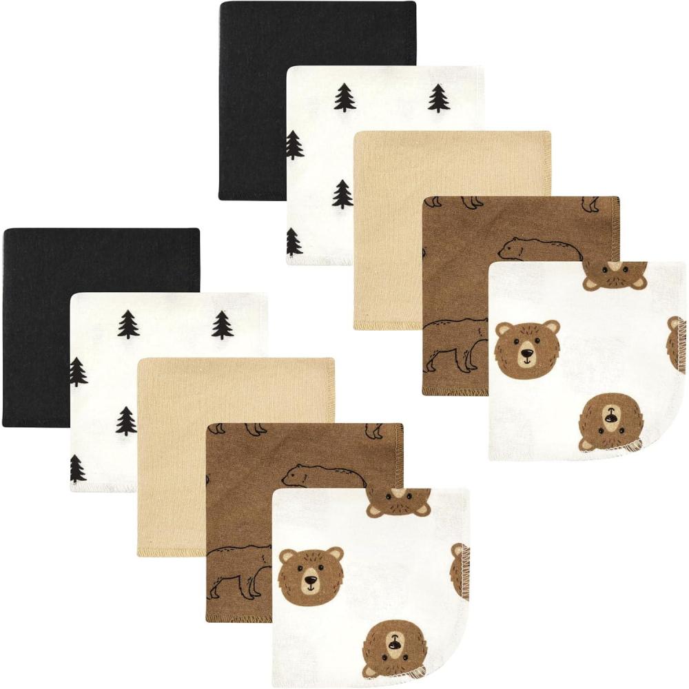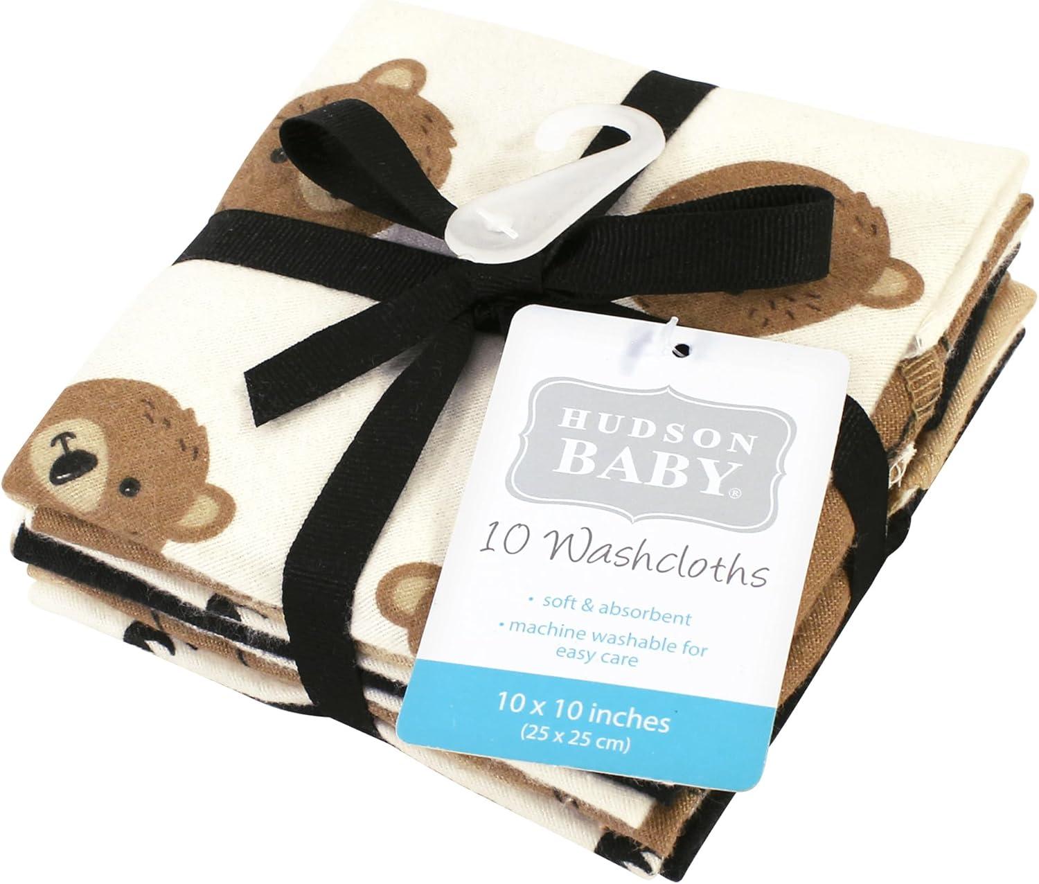 Hudson Baby Unisex Baby Flannel Washcloths, Boy Woodland Pals 12Pk, One Size(Brown Bear 10 Pack)