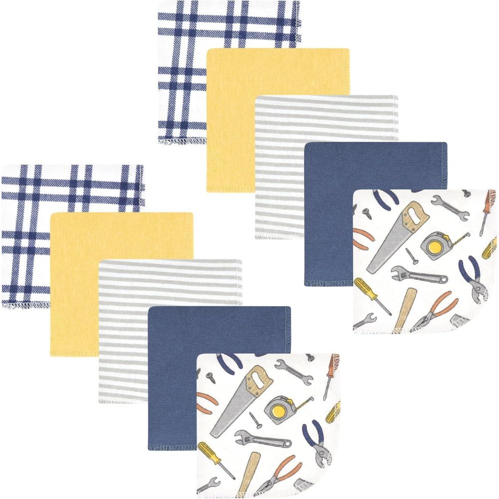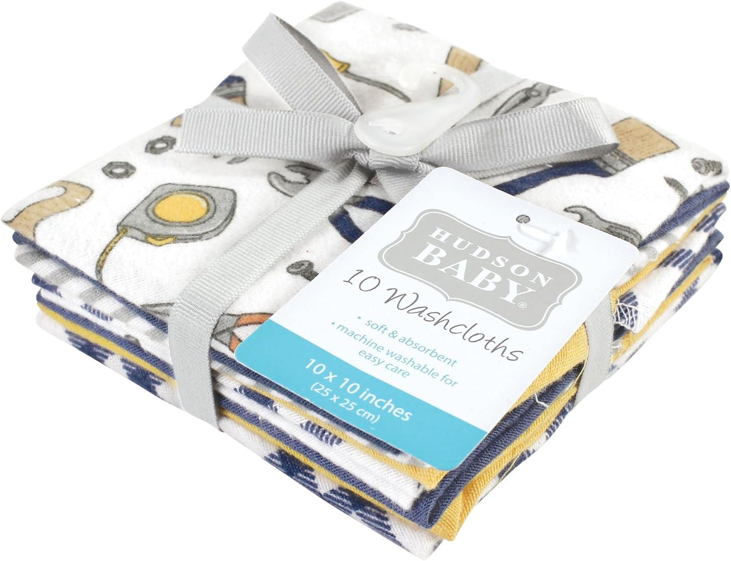 Hudson Baby Unisex Baby Flannel Washcloths, Boy Woodland Pals 12Pk, One Size(Construction Work 10pk)
