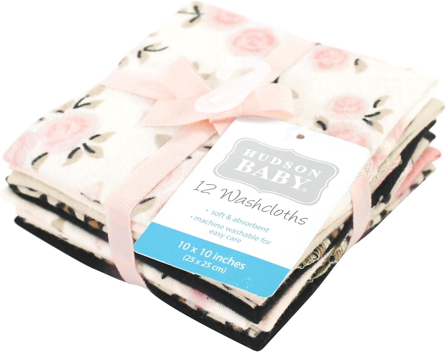 Hudson Baby Unisex Baby Flannel Washcloths, Boy Woodland Pals 12Pk, One Size(Neutral Pink Floral 12 Pack)