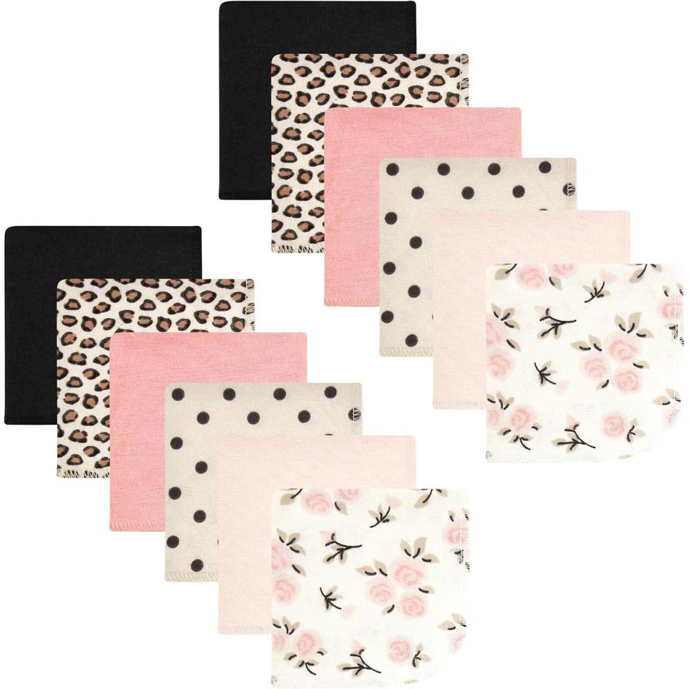 Hudson Baby Unisex Baby Flannel Washcloths, Boy Woodland Pals 12Pk, One Size(Neutral Pink Floral 10 Pack)