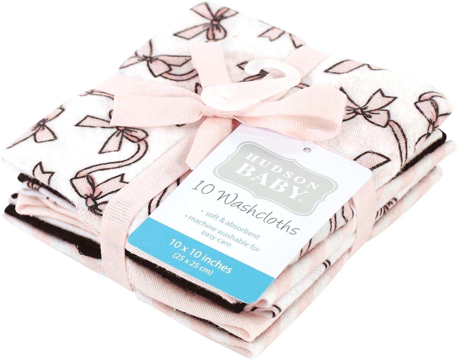 Hudson Baby Unisex Baby Flannel Washcloths, Boy Woodland Pals 12Pk, One Size(Pink Bows 10 Pack)