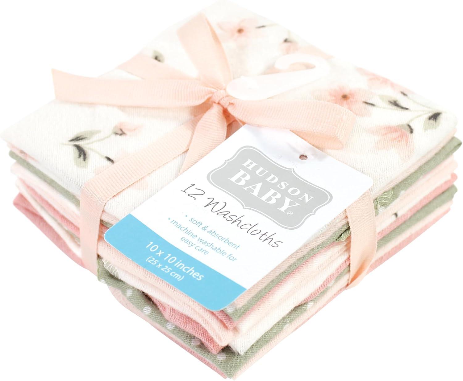 Hudson Baby Unisex Baby Flannel Washcloths, Boy Woodland Pals 12Pk, One Size(Pink Dainty Floral 10 Pack)