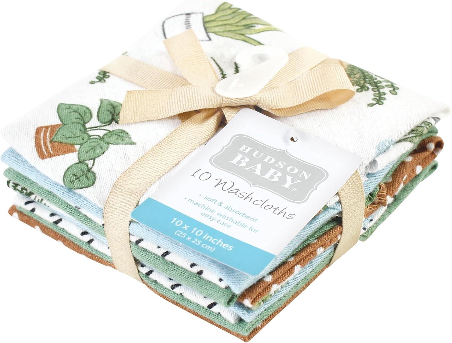 Hudson Baby Unisex Baby Flannel Washcloths, Boy Woodland Pals 12Pk, One Size(Plants 10 Pack)