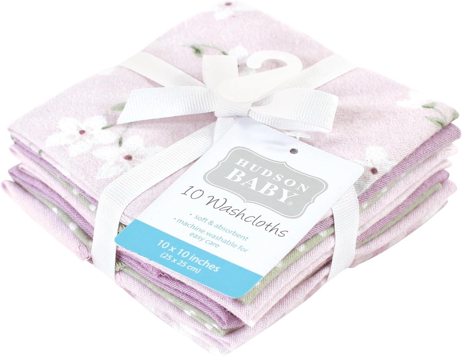 Hudson Baby Unisex Baby Flannel Washcloths, Boy Woodland Pals 12Pk, One Size(Purple Dainty Floral 10 Pack)