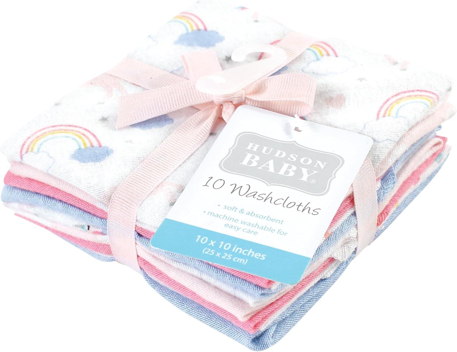 Hudson Baby Unisex Baby Flannel Washcloths, Boy Woodland Pals 12Pk, One Size(Unicorns Rainbows 10 Pack)