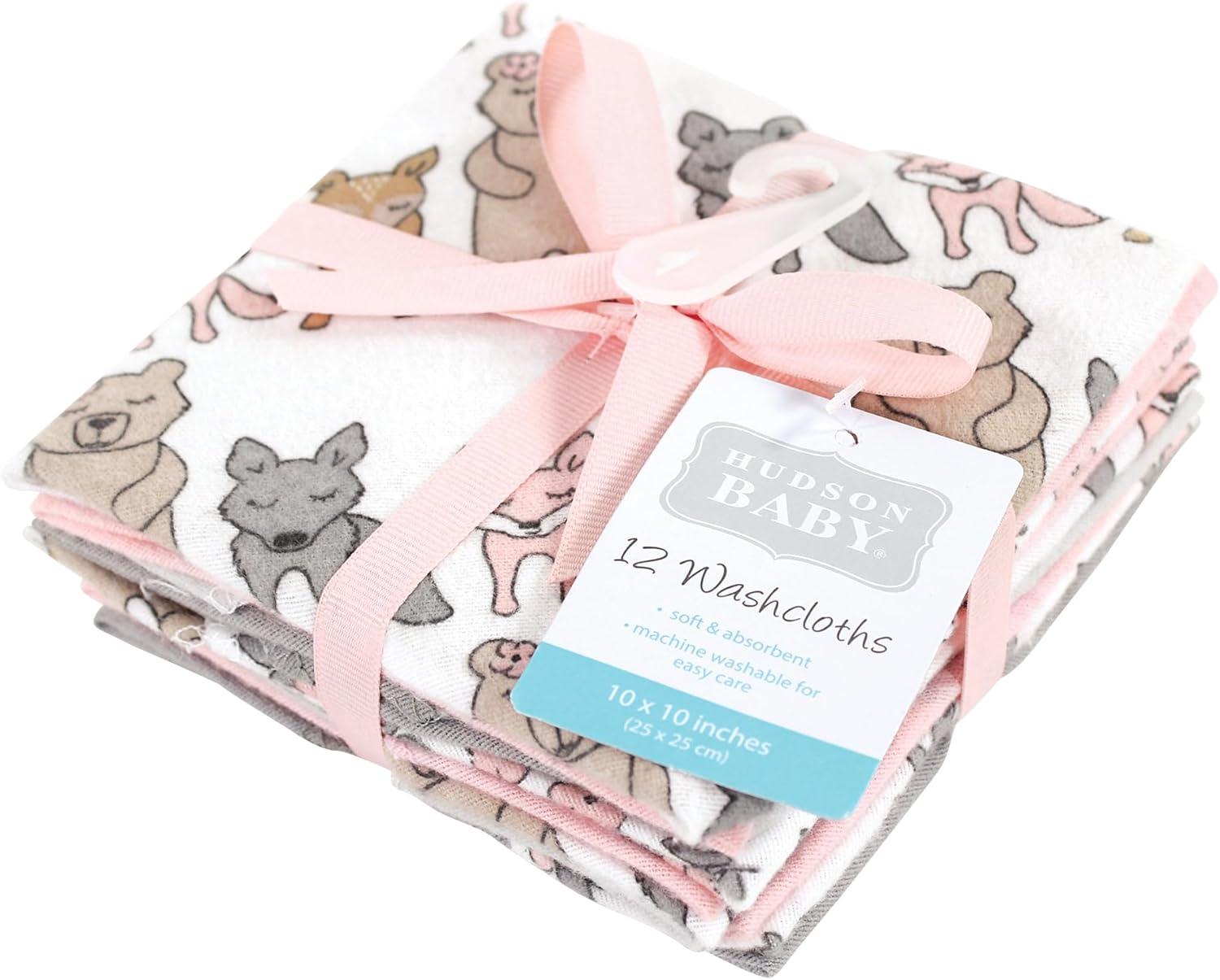 Hudson Baby Unisex Baby Flannel Washcloths, Boy Woodland Pals 12Pk, One Size(Wild Forest Pink 12-pack)