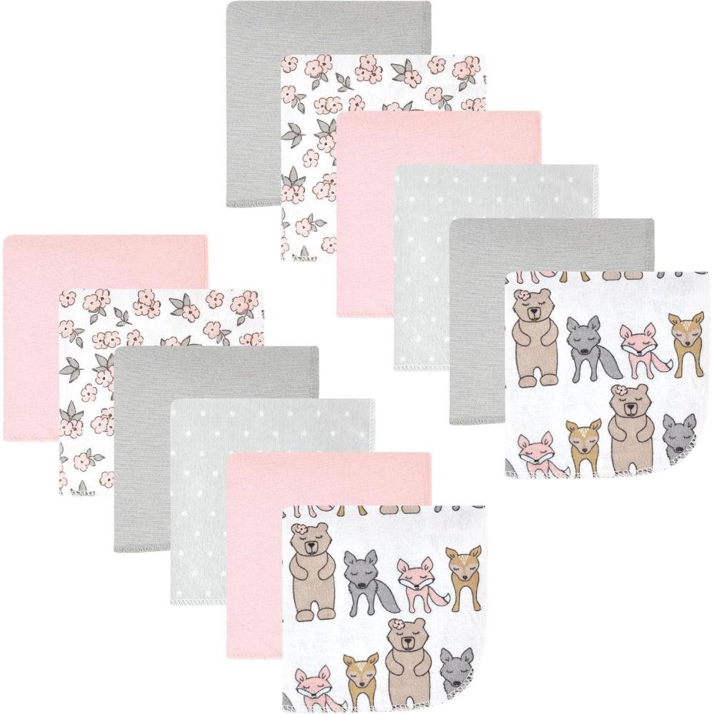 Hudson Baby Unisex Baby Flannel Washcloths, Boy Woodland Pals 12Pk, One Size(Wild Forest Pink 10-pack)
