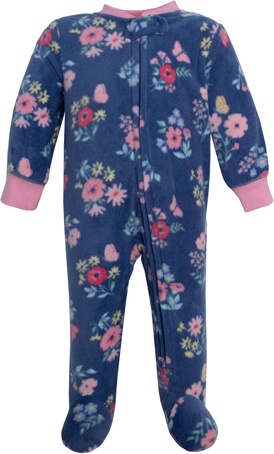 Hudson Baby Unisex Baby Fleece Sleep and Play(Blue Butterfly Floral)