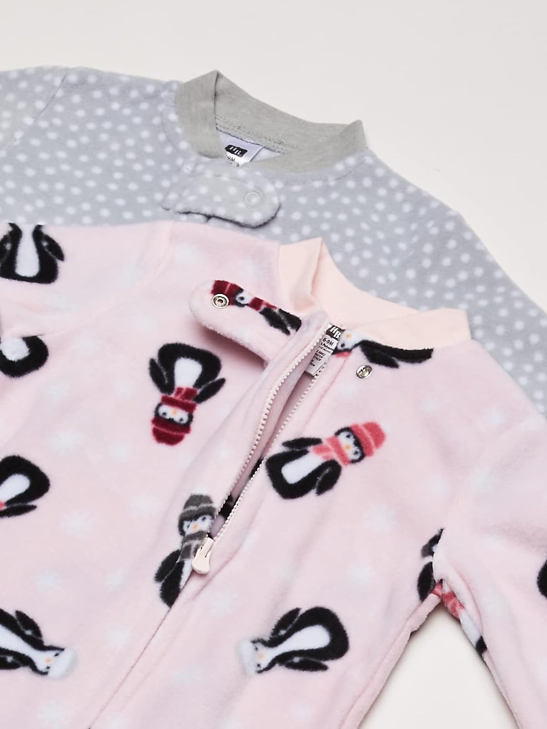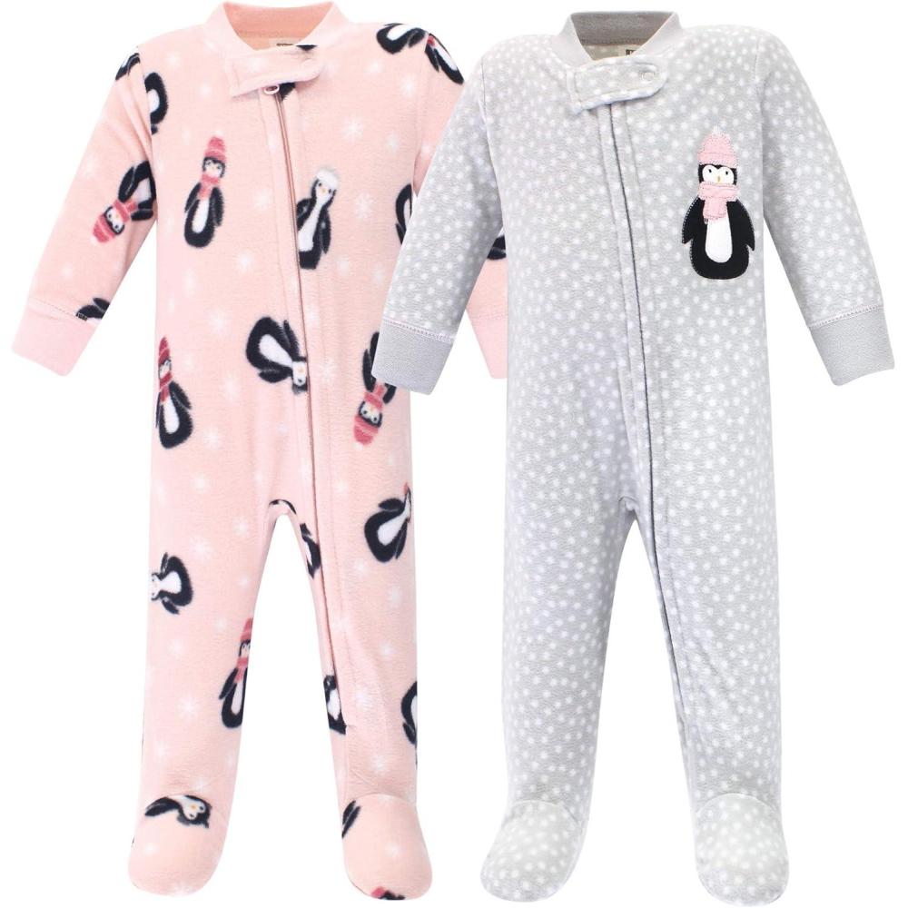 Hudson Baby Unisex Baby Fleece Sleep and Play(Pink Penguin)