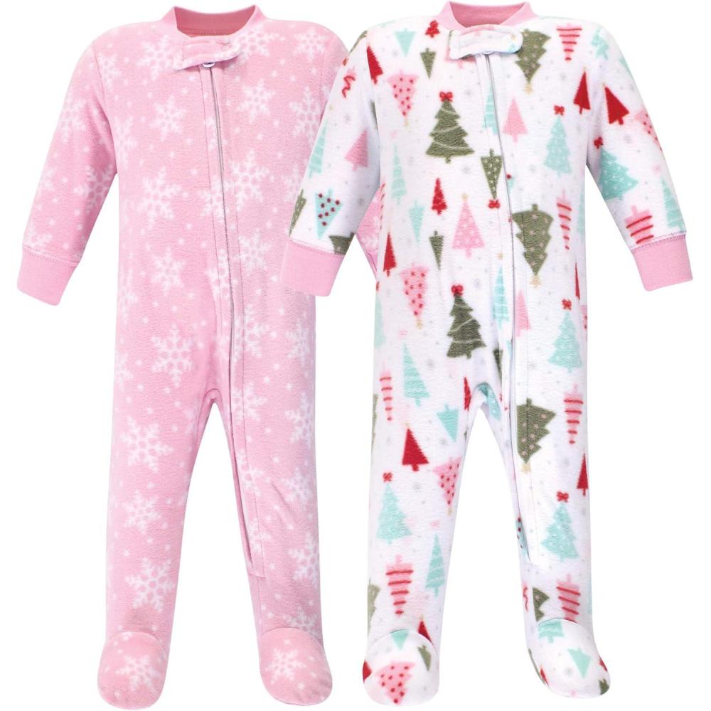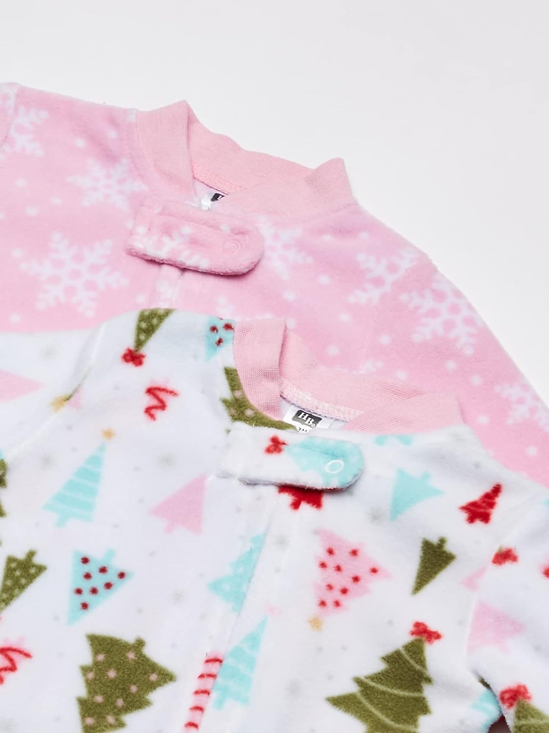 Hudson Baby Unisex Baby Fleece Sleep and Play(Gray Pink Snowflake)
