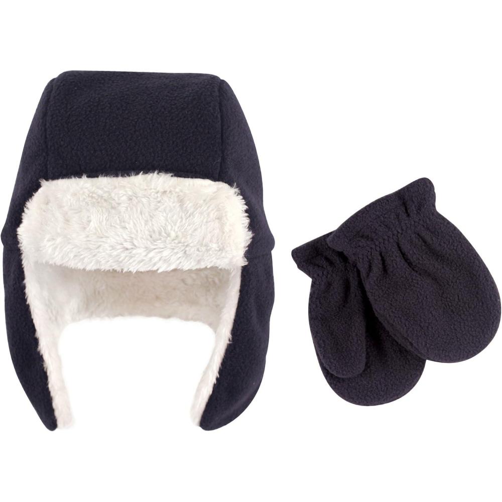 Hudson Baby Unisex-Baby Fleece Trapper Hat and Mitten Set(Navy Toddler)