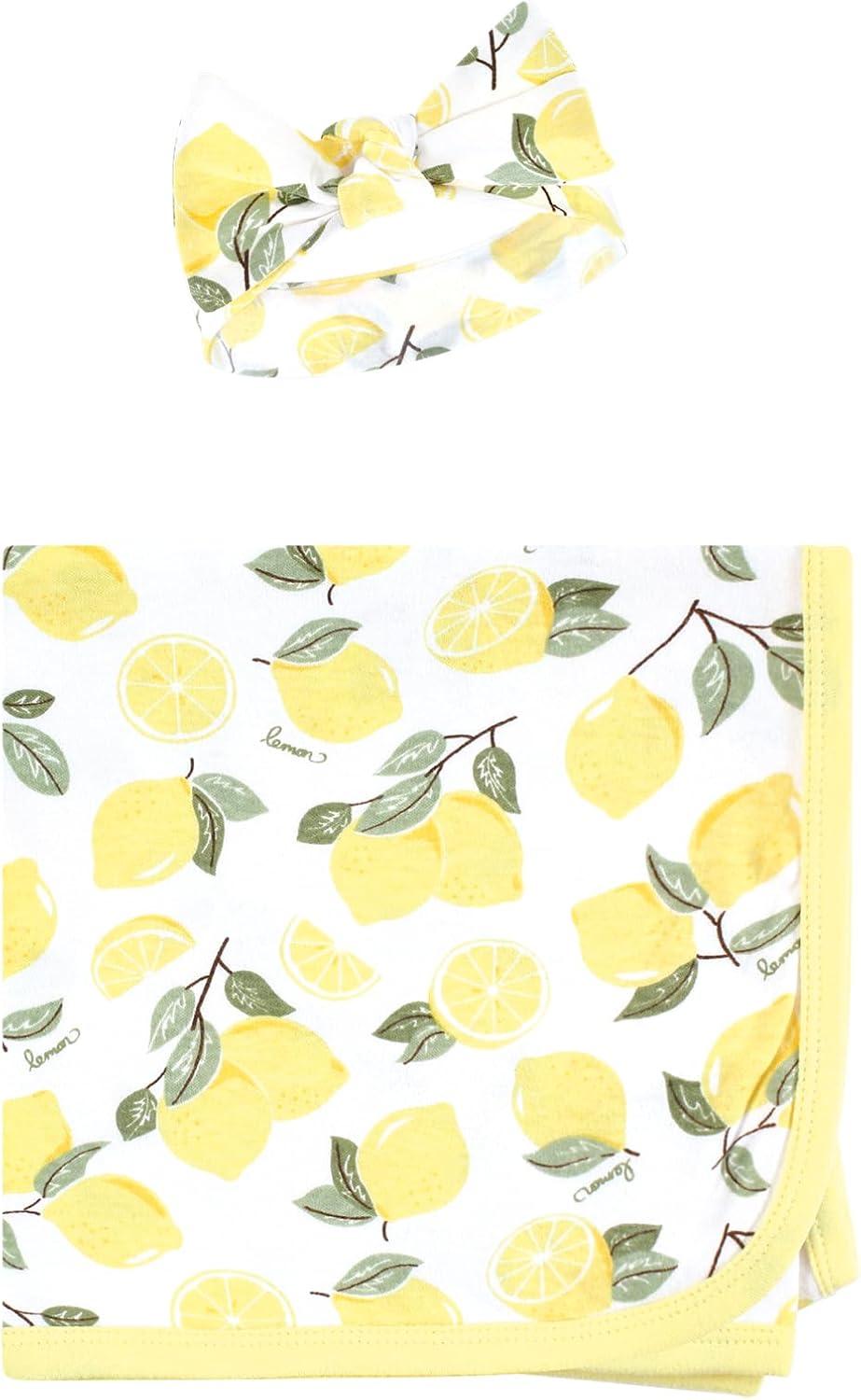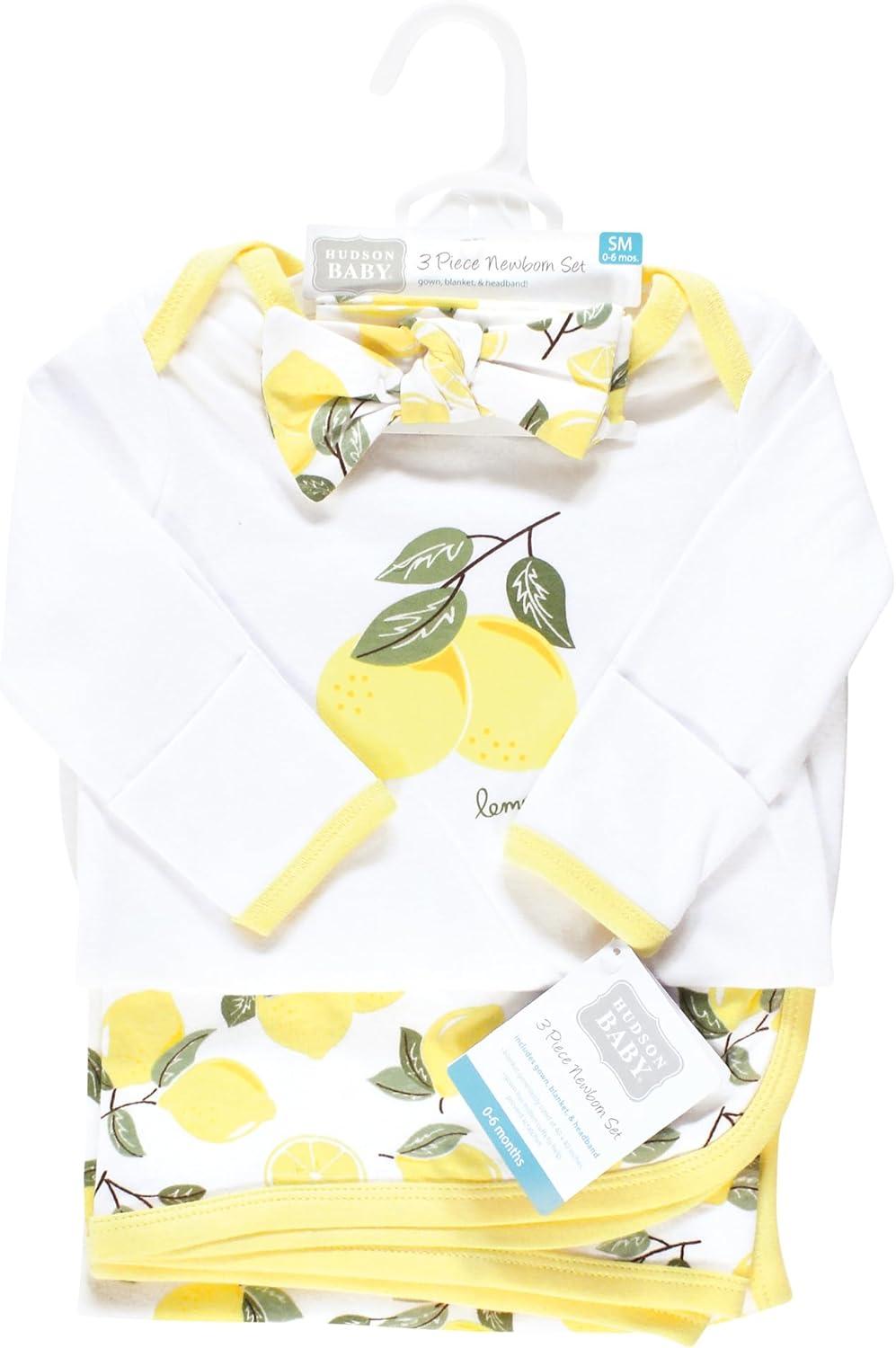 Hudson Baby Unisex Baby Gown, Swaddle Blanket and Cap or Headband, 0-6 Months(Lemons)