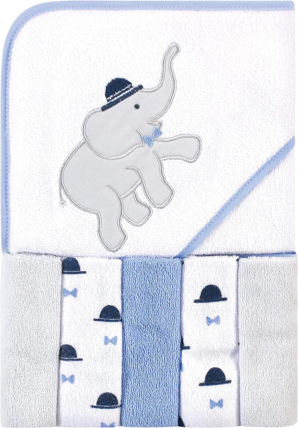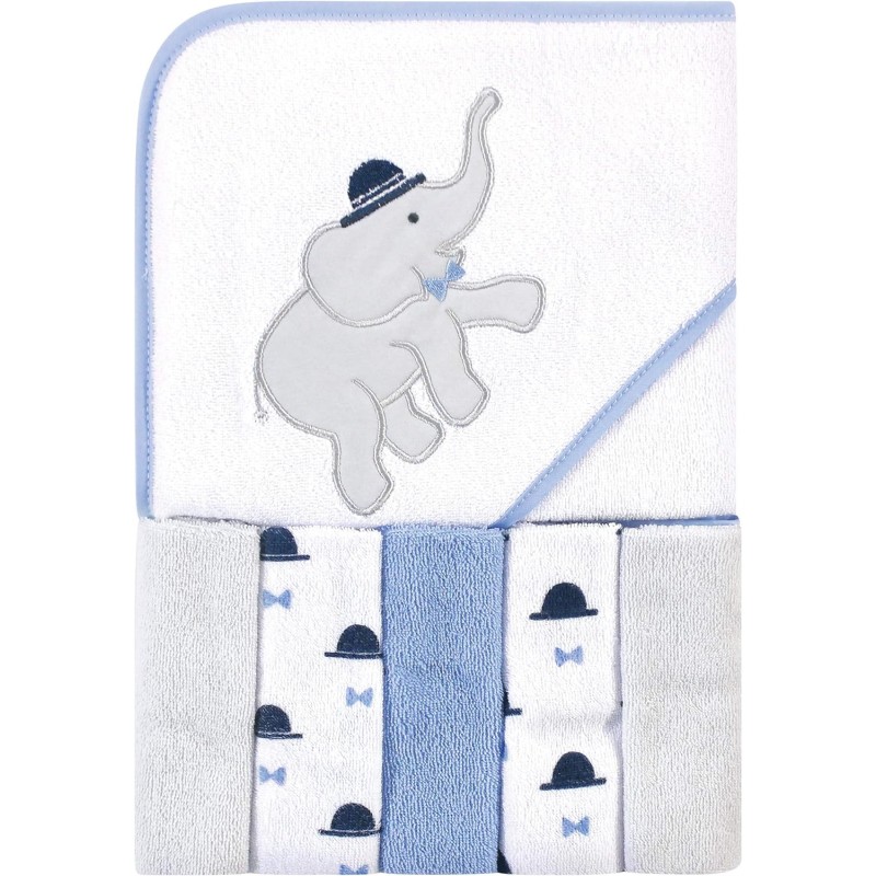 Hudson Baby Unisex Baby Hooded Towel and Five Washcloths, Yellow Duck, One Size(Handsome Elephant One Size)