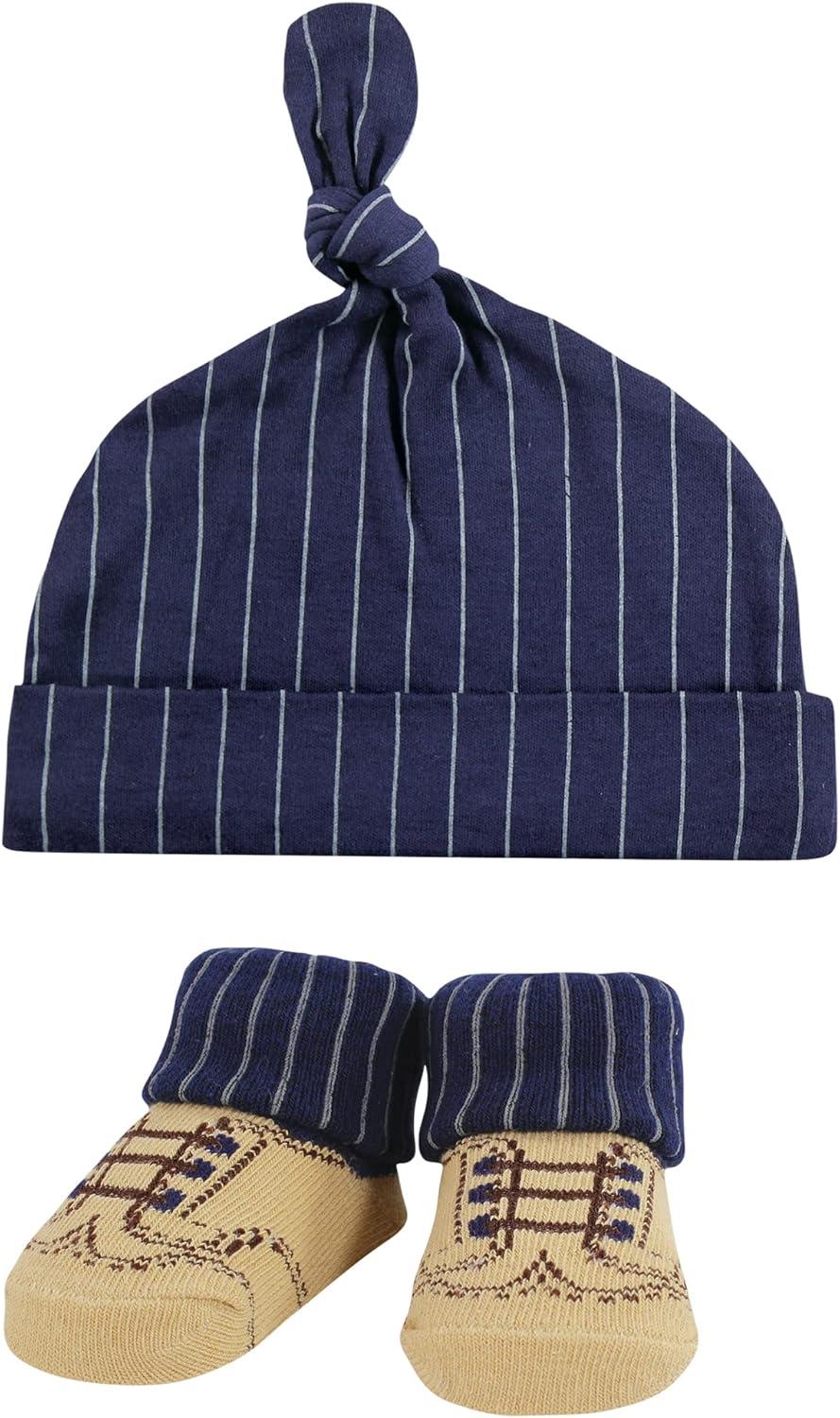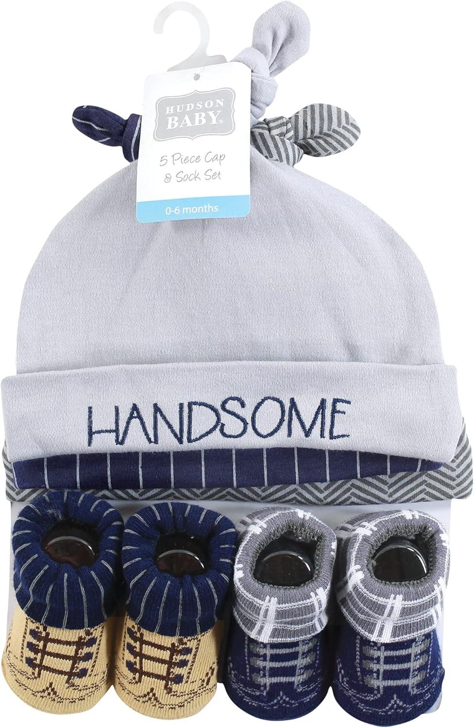 Hudson Baby cotton cap and socks set is the perfect set for your newborn. Our caps and socks will help your little one stay warm and matching from head to toes! Socks have elastic so they stay snug on feet, but not too tight. Both caps and socks are made to be gentle on baby's skin. Fits ages 0-9 months.