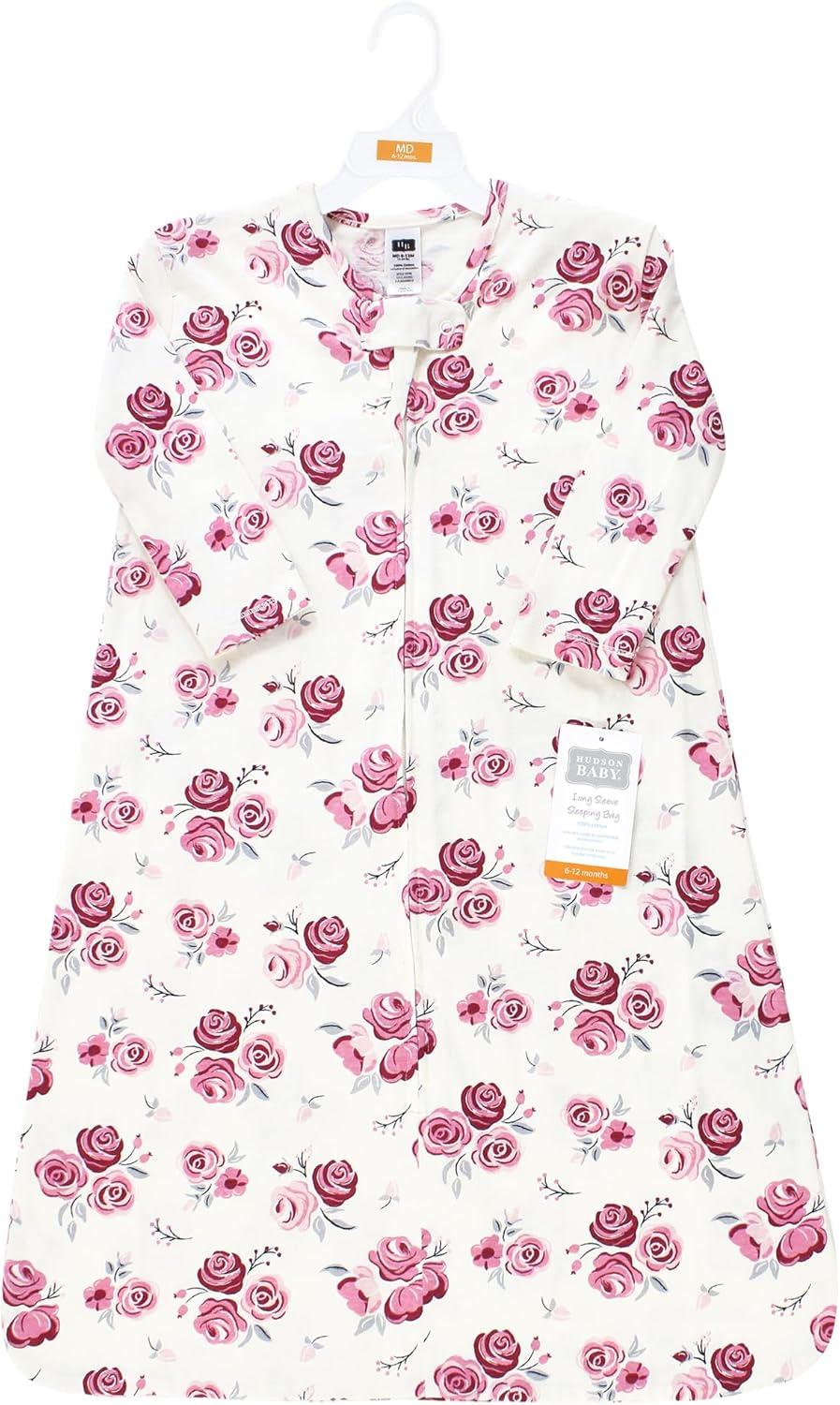 Hudson Baby Unisex Baby Long Sleeve Cotton Jersey Sleeping Bag, Sack, Blanket(Red Rose)