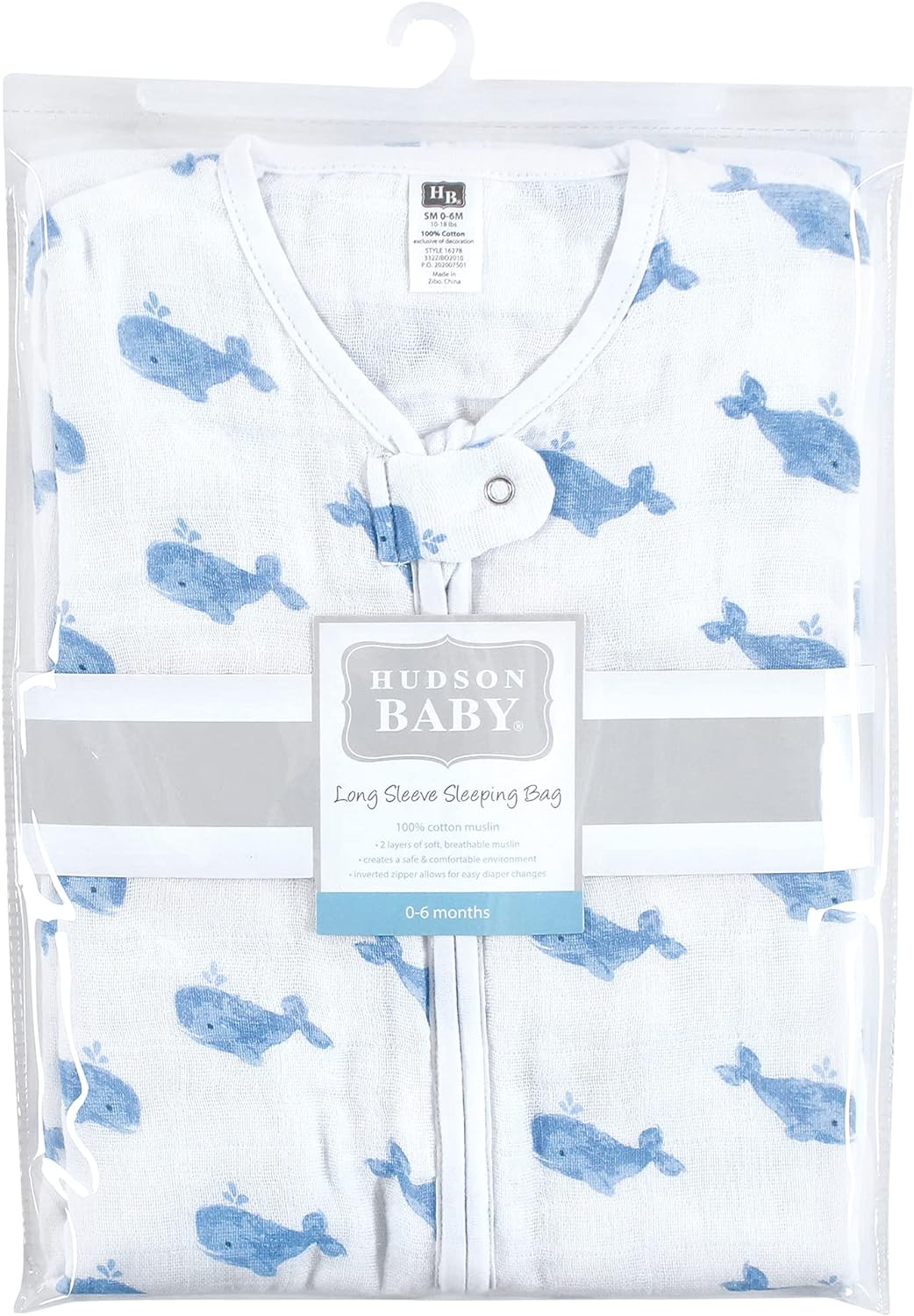 Hudson Baby Unisex Baby Long Sleeve Muslin Sleeping Bag, Wearable Blanket, Sleep Sack(Blue Whale)
