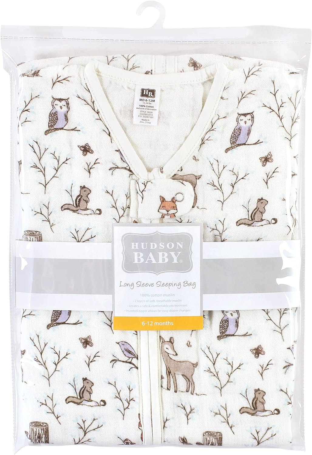 Hudson Baby Unisex Baby Long Sleeve Muslin Sleeping Bag, Wearable Blanket, Sleep Sack(Enchanted Forest)
