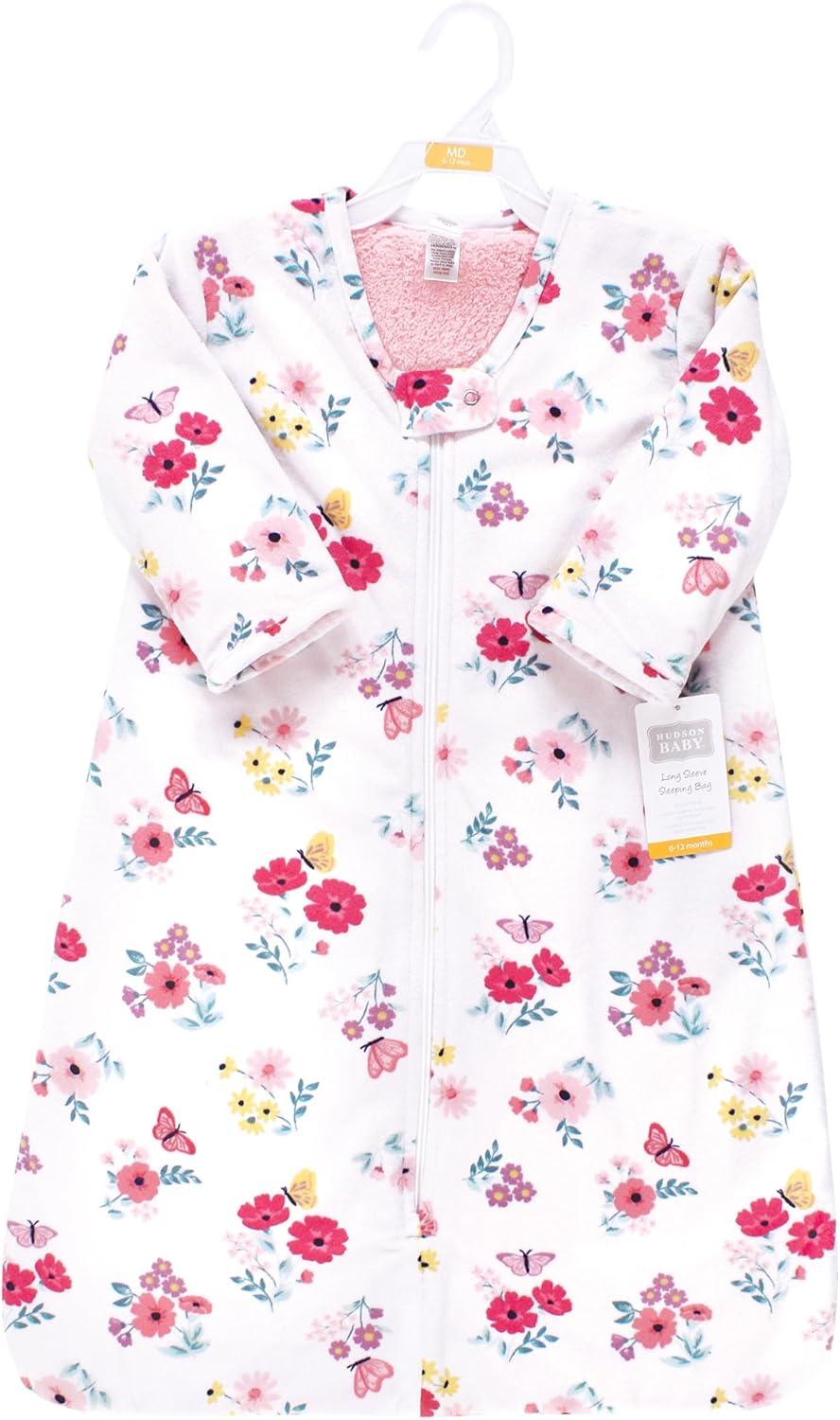 Hudson Baby Unisex Baby Long Sleeve Plush Faux Fur Sleeping Bag, Wearable Blanket(Butterfly Floral)