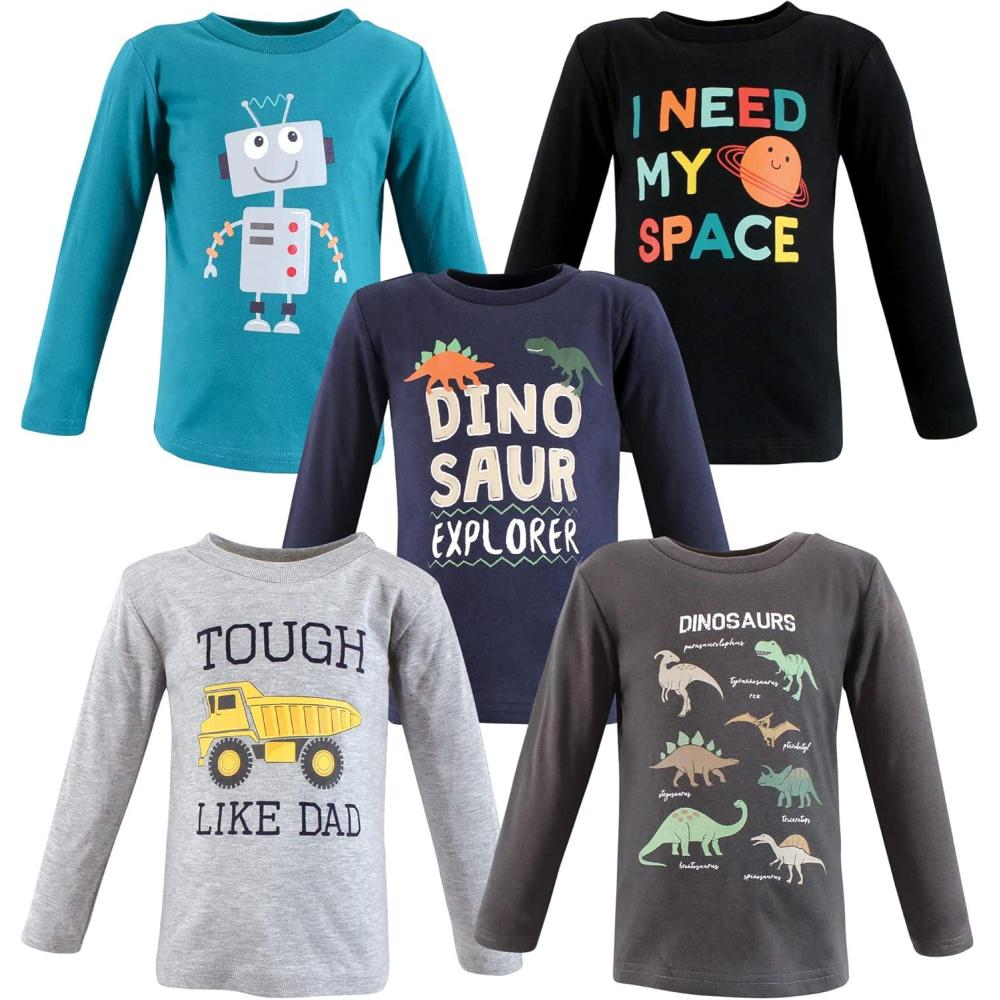 Hudson Baby Unisex Baby Long Sleeve T-Shirts(Dino Truck Robot)