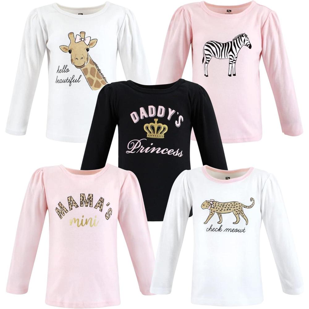Hudson Baby t-shirts are great everyday tops for your little ones. Featuring fun prints and patterns, our t-shirts are made with comfortable, soft cotton poly fabric that feels wonderful on children's skin. Our sets include five t-shirts so you can mix and match with your child's wardrobe for fun everyday outfits.