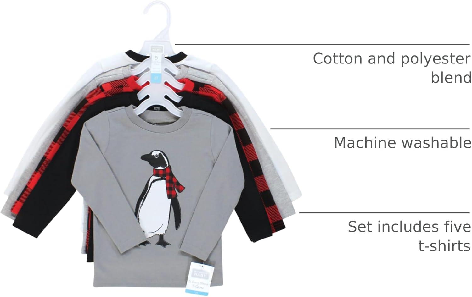 Hudson Baby Unisex Baby Long Sleeve T-Shirts(Winter Penguin Moose)