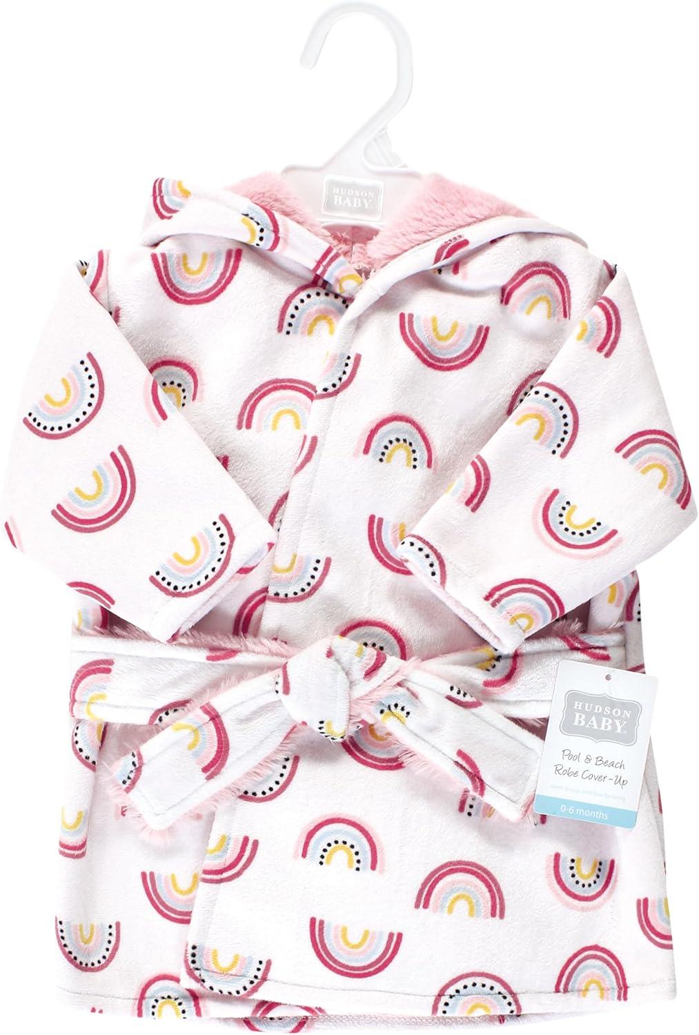 Hudson Baby Unisex Baby Mink with Faux Fur Lining Pool and Beach Robe Cover-ups, Modern Rainbow, 0-6 Months(Modern Rainbow)