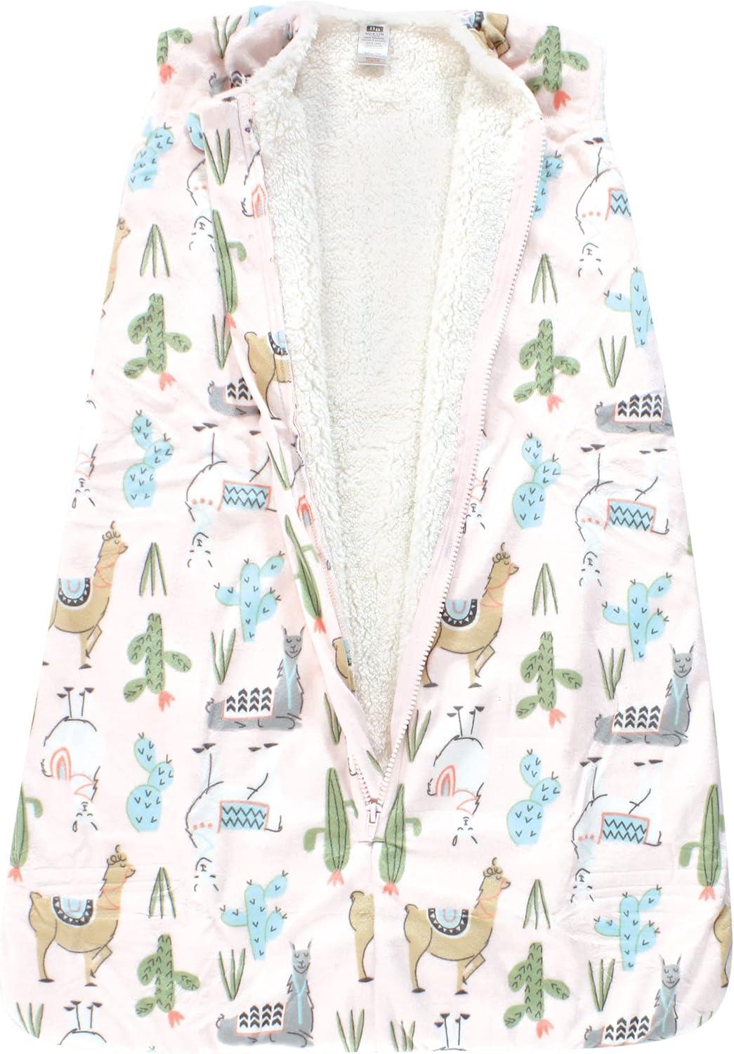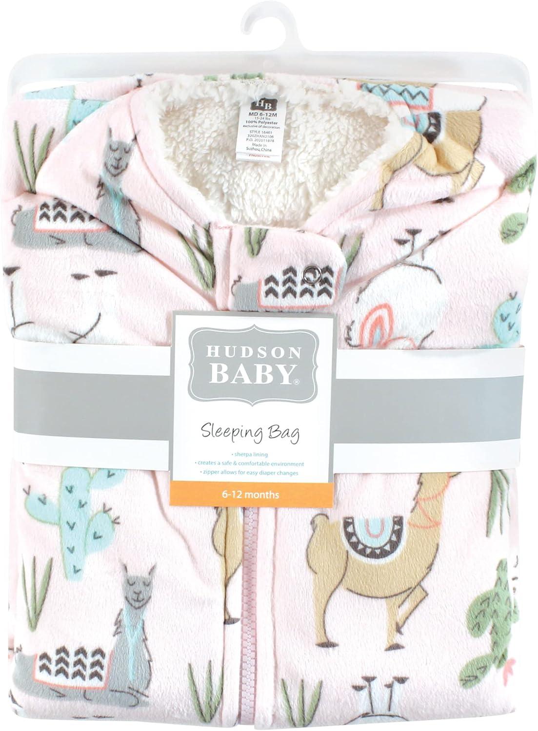 Hudson Baby Unisex Baby Mink with Sherpa Inner Sleeping Bag, Sack, Blanket, Pink Floral, 0-6 Months(Llama)