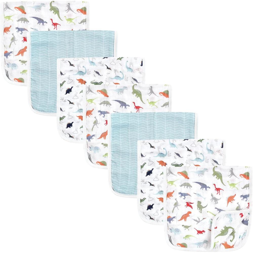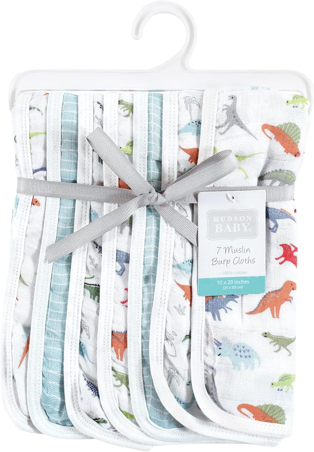 Hudson Baby Unisex Baby Muslin Burp Cloth 7pk, Forest Animals, One Size(Dino)