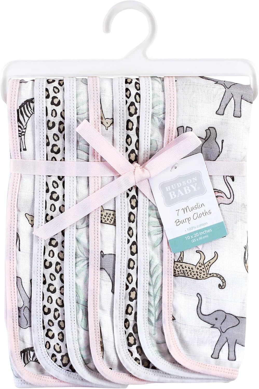 Hudson Baby Unisex Baby Muslin Burp Cloth 7pk, Forest Animals, One Size(Modern Pink Safari)