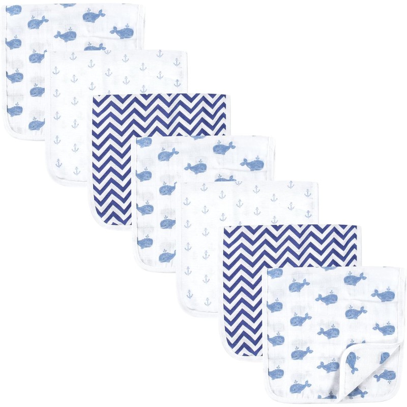 Hudson Baby Unisex Baby Muslin Burp Cloth 7pk, Forest Animals, One Size(One Size Blue Whales)