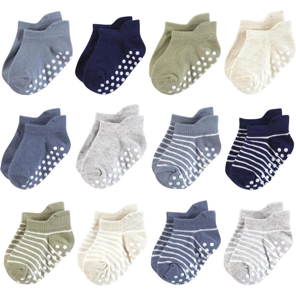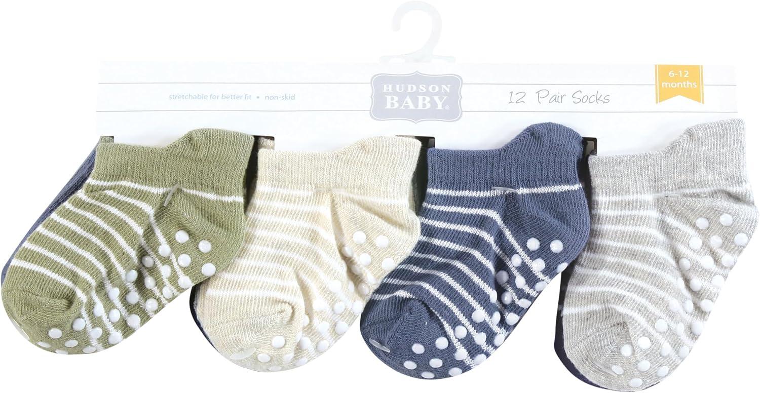 Hudson Baby Unisex Baby Non-Skid No-Show Socks(Boy Asst Stripes)