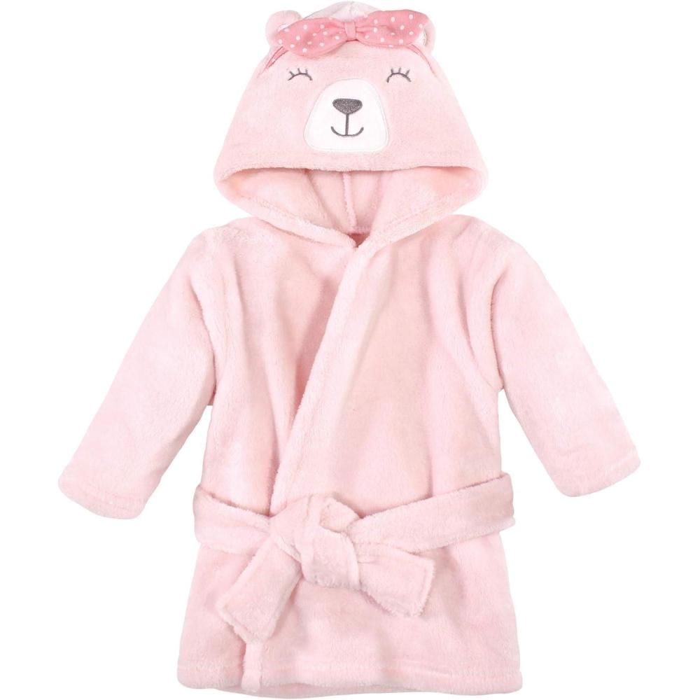 Hudson Baby Unisex Baby Plush Animal Face Bathrobe(Bear Girl)