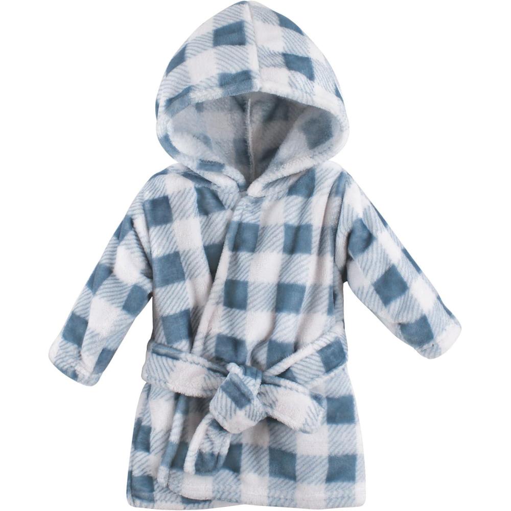 Hudson Baby Unisex Baby Plush Animal Face Bathrobe(Blue Plaid)