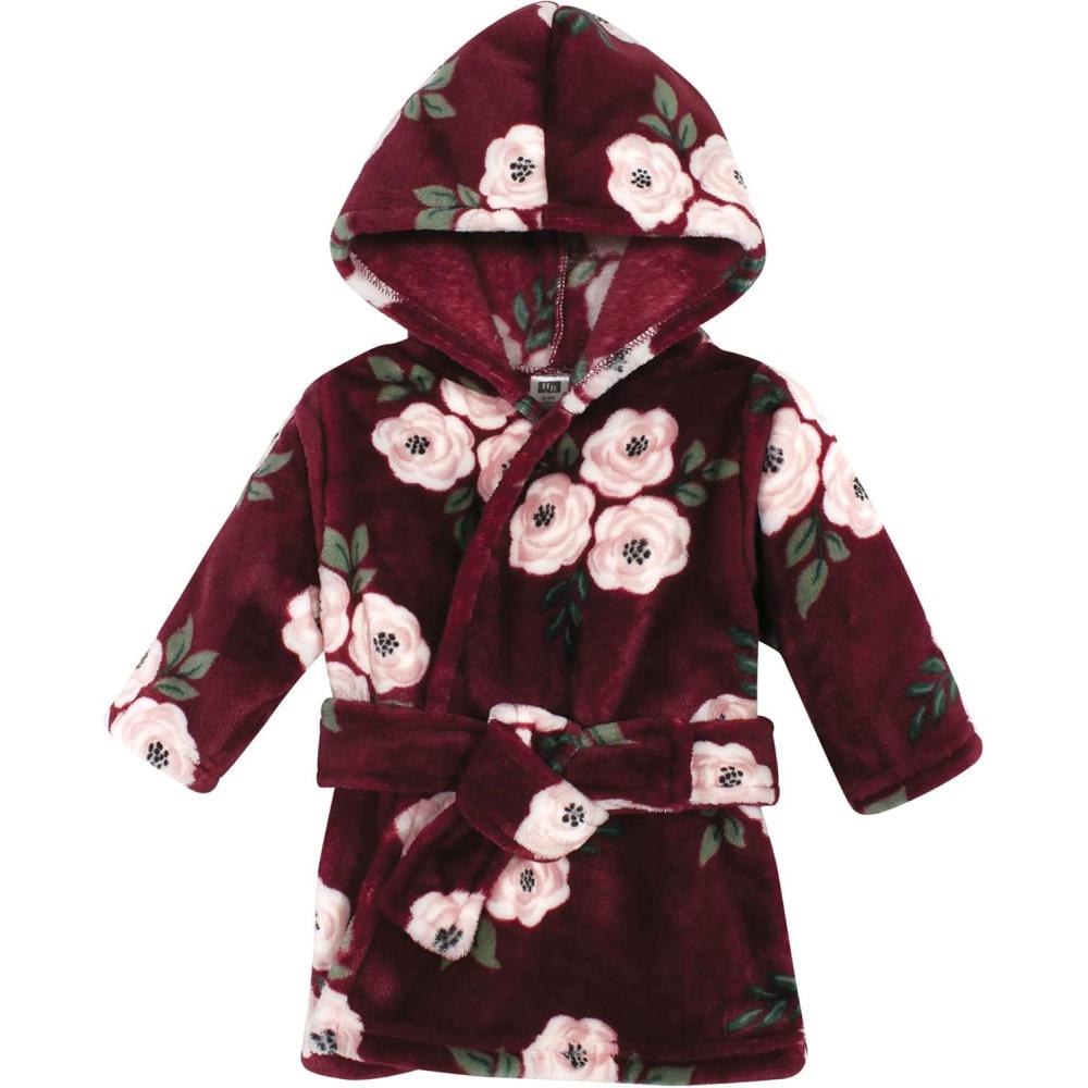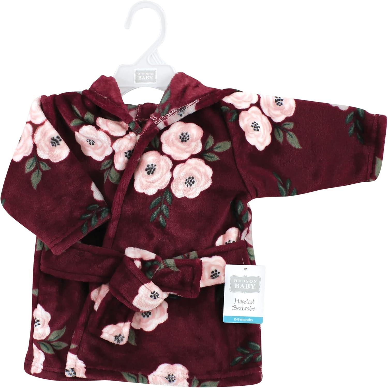 Hudson Baby Unisex Baby Plush Animal Face Bathrobe(Burgundy Floral)