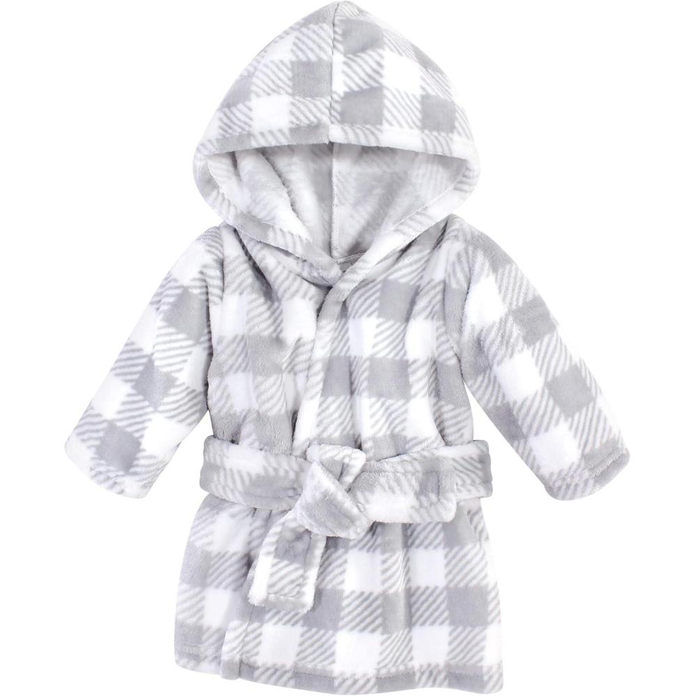 Hudson Baby Unisex Baby Plush Animal Face Bathrobe(Gray Plaid)