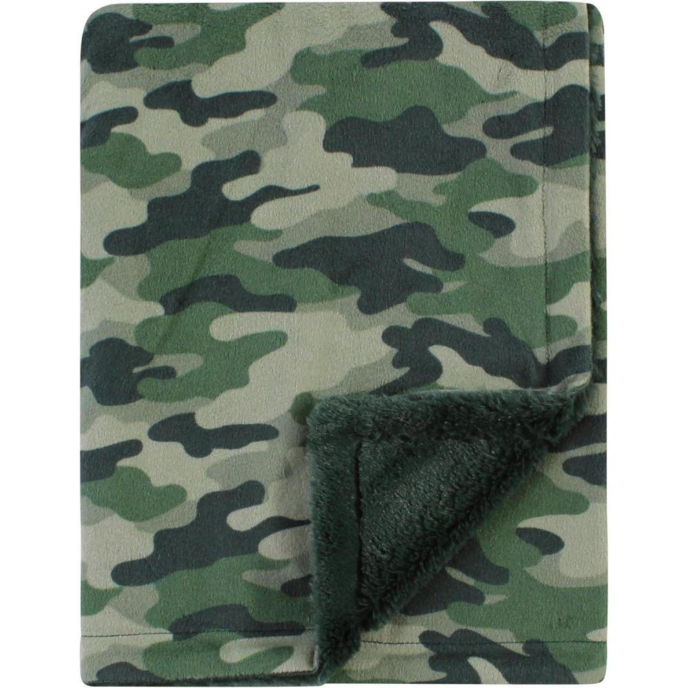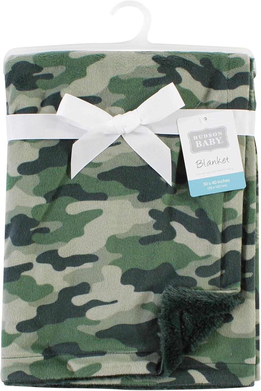 Hudson Baby Unisex Baby Plush Blanket with Furry Binding and Back, Construction, One Size(Camo)