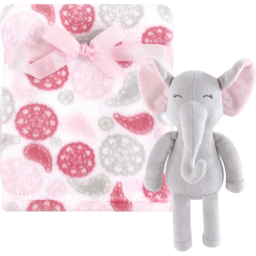 Hudson Baby Unisex Baby Plush Blanket with Toy, Paisley Elephant, One Size(Pink Unicorn Toy)