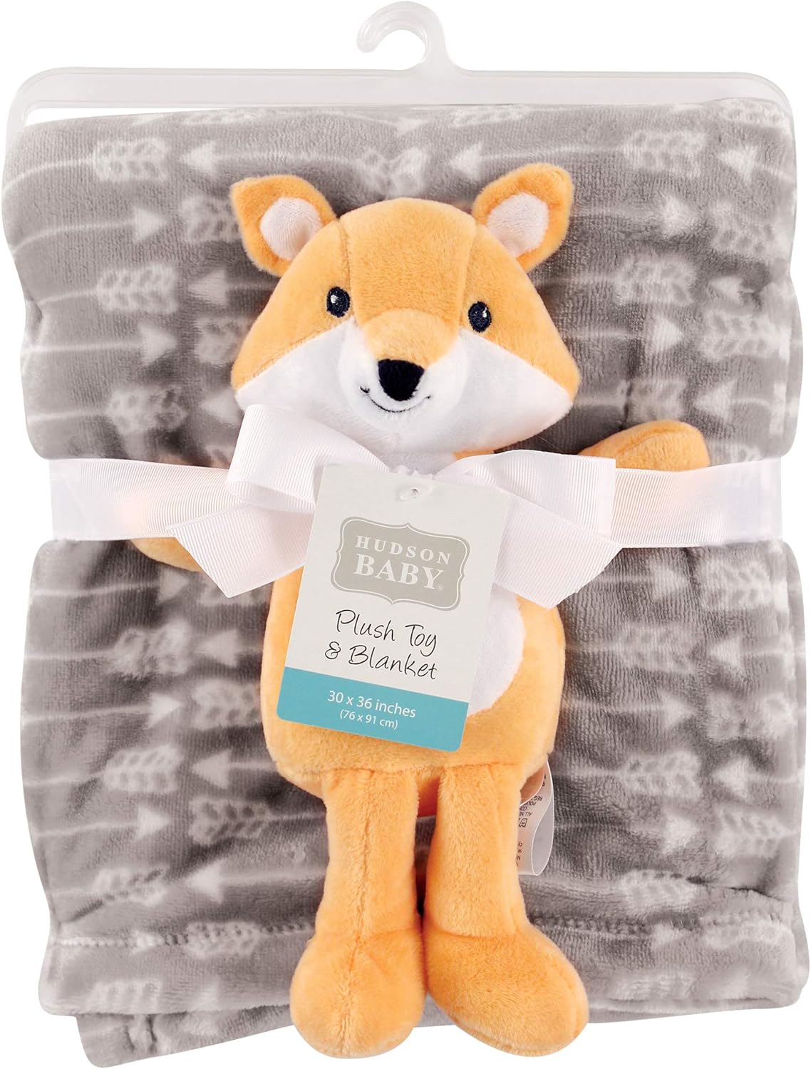 Hudson Baby plush blanket and toy set is soft and cuddly, and perfect to aid in child development. Hudson Baby plush blanket with toy is a great set for every baby to have because it is made of warm and cozy plush fabric that is soft and gentle on baby's skin with a cute 3D toy your baby is sure to fall in love with. Our plush toy will keep baby calm and content with their favorite animal friend. The larger blanket measures a generous 30×36 inches, perfect for snuggling, cuddling, swaddling, or as a car seat or stroller cover.