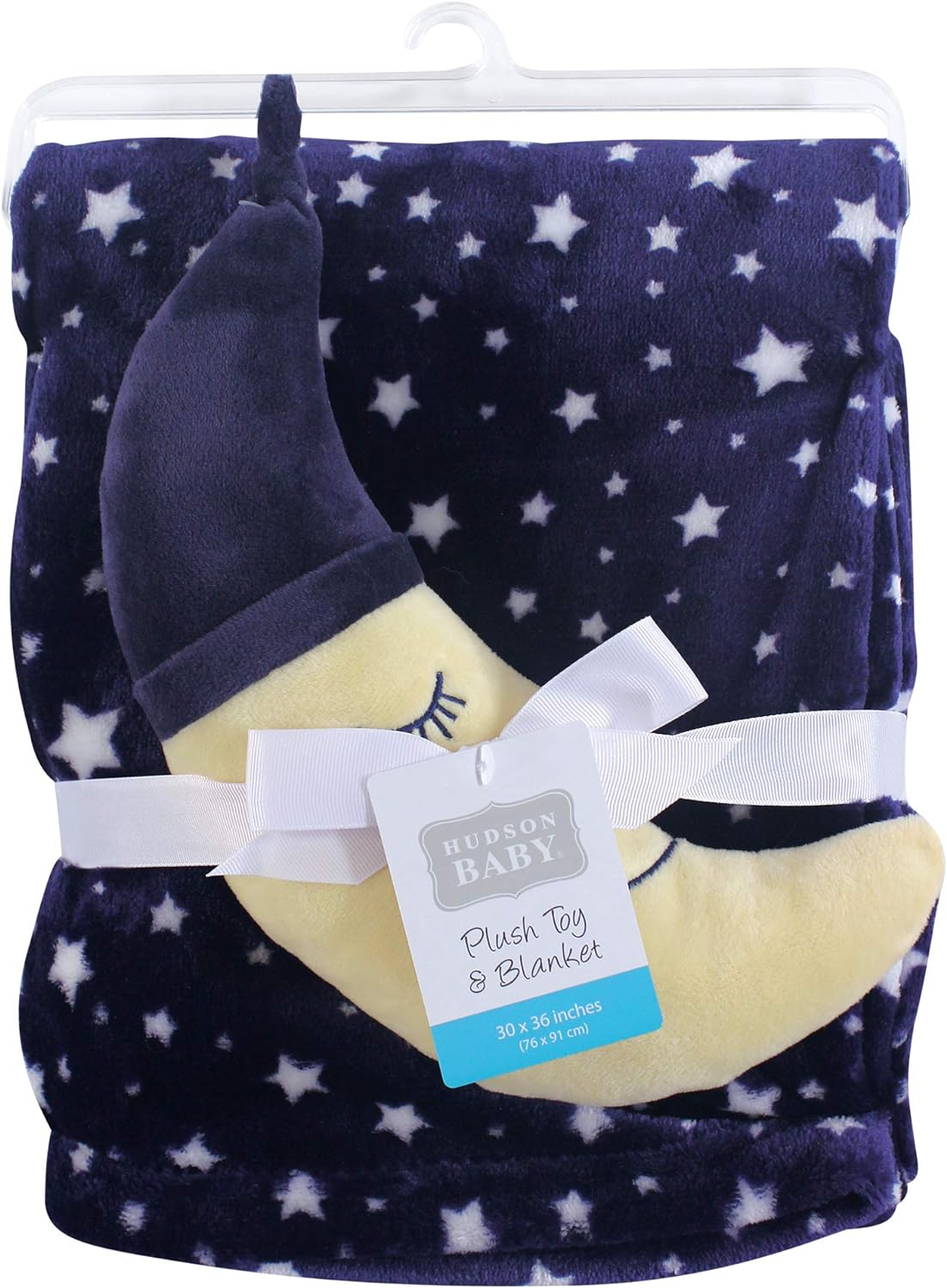 Hudson Baby Unisex Baby Plush Blanket with Toy, Santa, One Size(Navy Moon One Size)