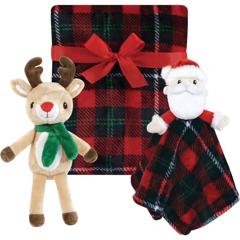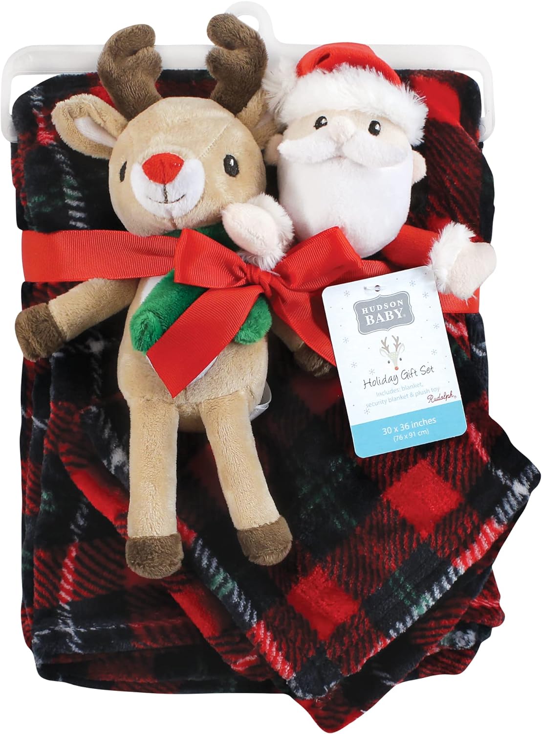 Hudson Baby Unisex Baby Plush Blanket with Toy, Santa, One Size(Rudolph and Santa Plaid One Size)