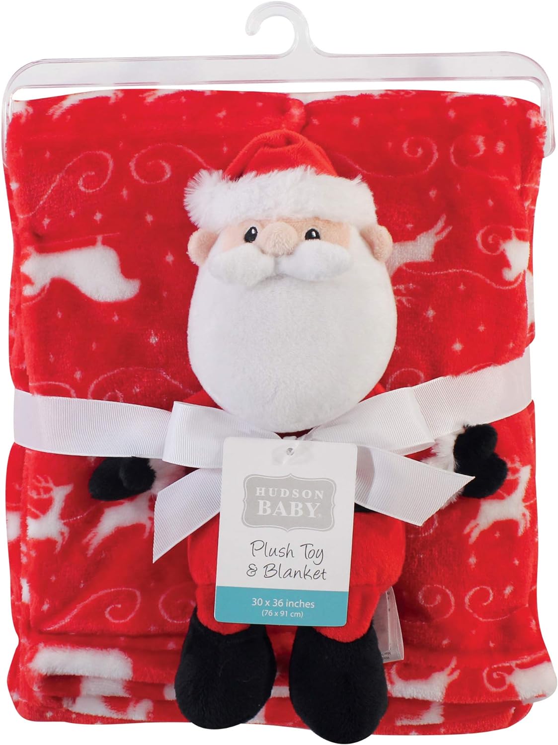 Hudson Baby Unisex Baby Plush Blanket with Toy, Santa, One Size(Santa One Size)
