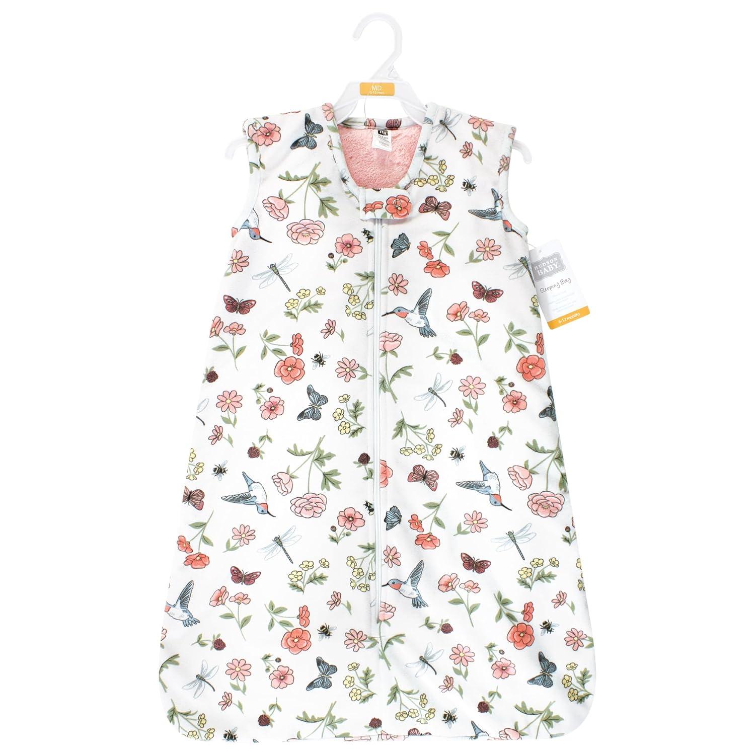 Hudson Baby Unisex Baby Plush Faux Fur Sleeping Bag, Wearable Blanket, Hummingbird Garden, 6-12 Months(Hummingbird Garden)
