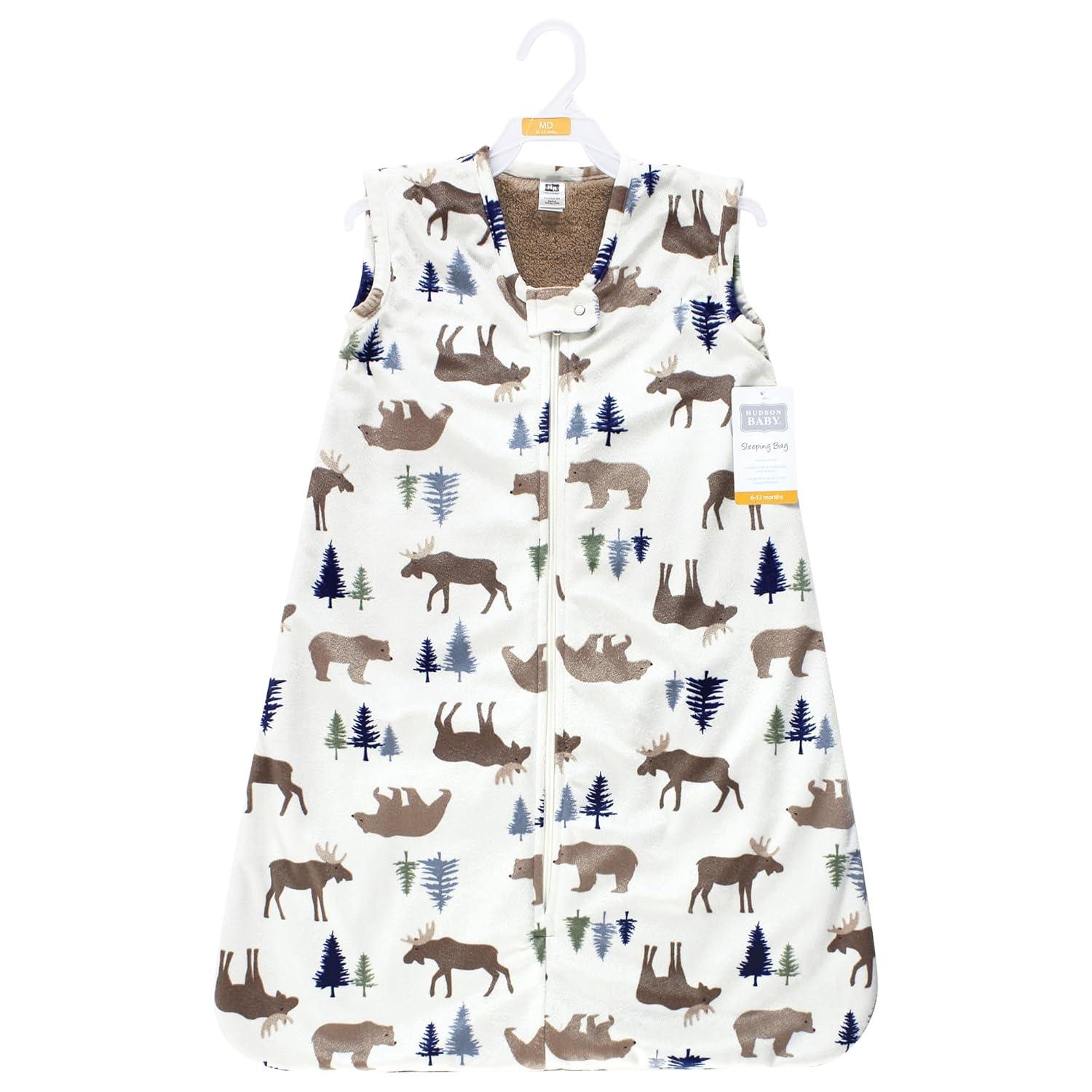 Hudson Baby Unisex Baby Plush Faux Fur Sleeping Bag, Wearable Blanket, Hummingbird Garden, 6-12 Months(Moose Bear)