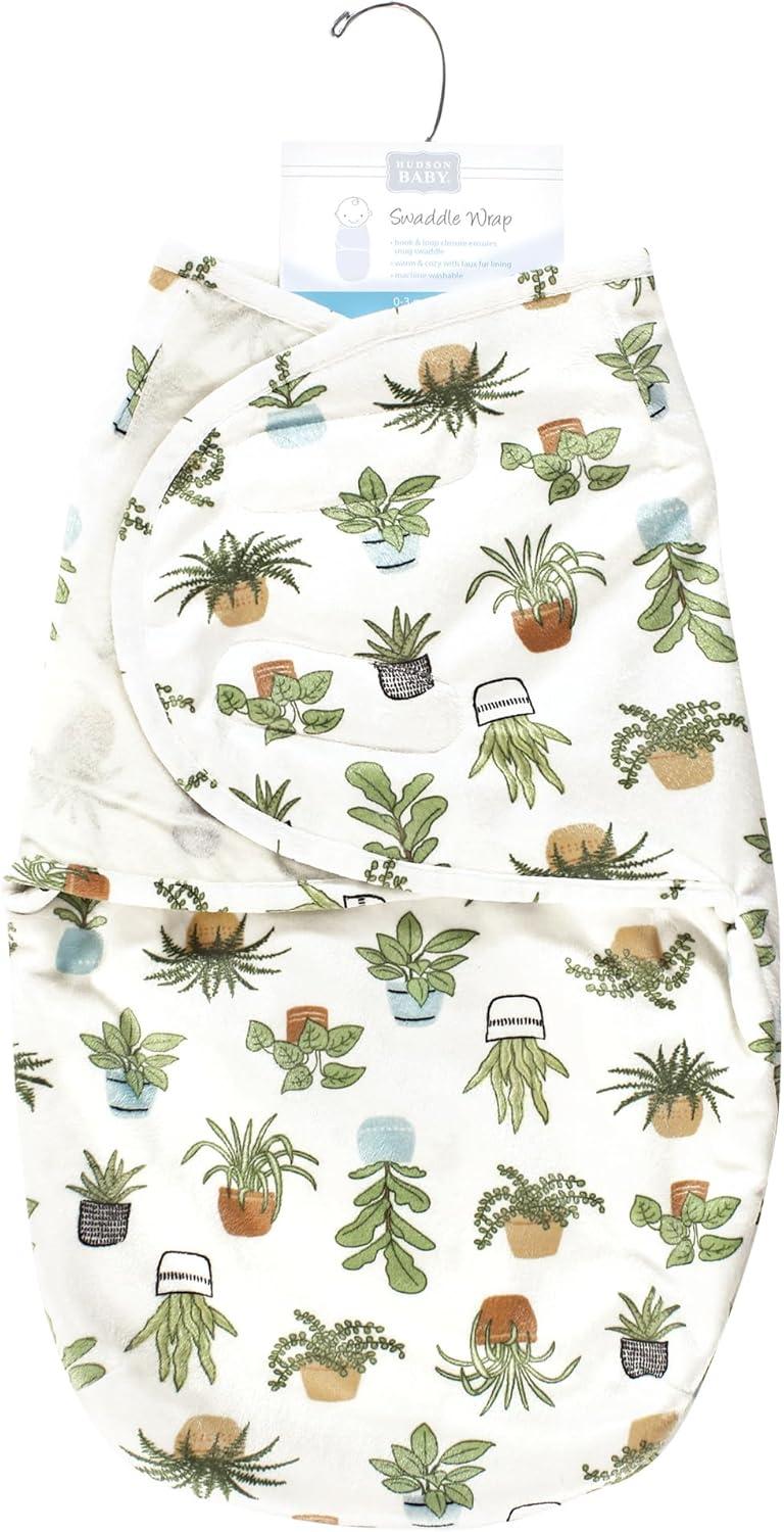 Hudson Baby Unisex Baby Plush Faux Fur Swaddle Wrap(Plants)