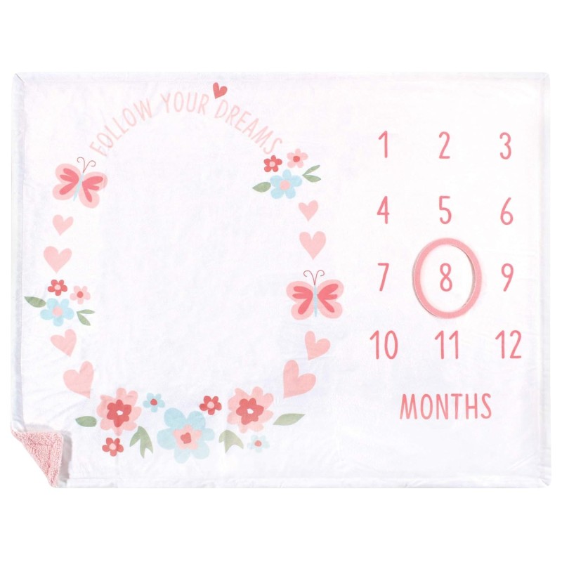 Hudson Baby milestone blanket is an affordable, high quality blanket to celebrate your baby's first year. Snap a photo every month to track your baby's development and growth. Our comfortable, cozy plush blanket is great for sleeping, cuddling, swaddling, or as a car seat, stroller, or nursing cover. Our blanket features bound edges for extra durability.
