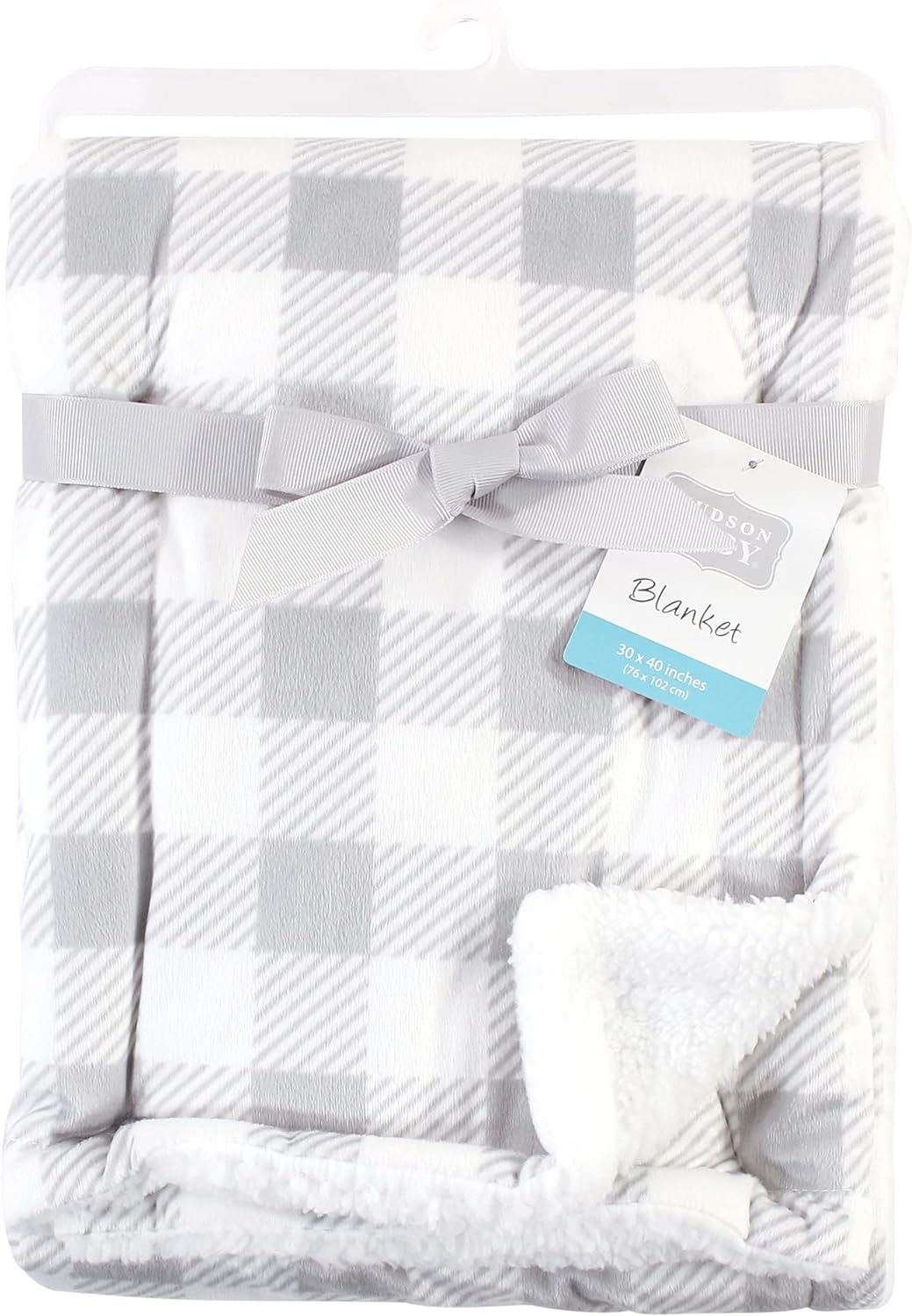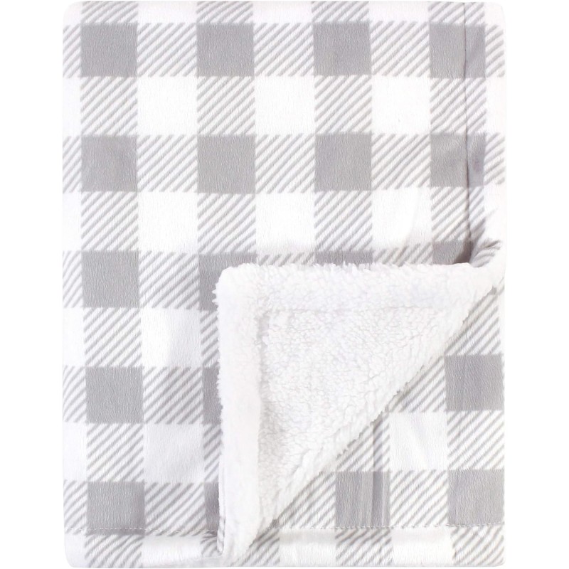 Hudson Baby Unisex Baby Plush Mink and Sherpa Blanket, Buffalo Plaid, One Size(Gray White One Size)