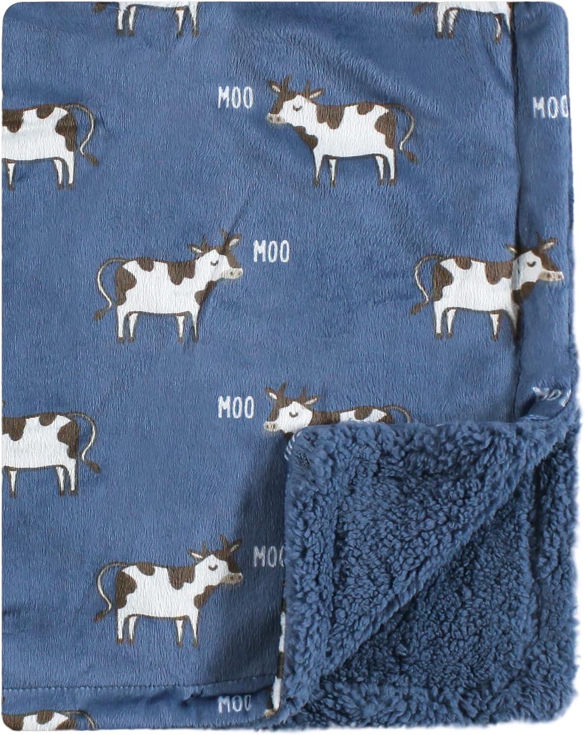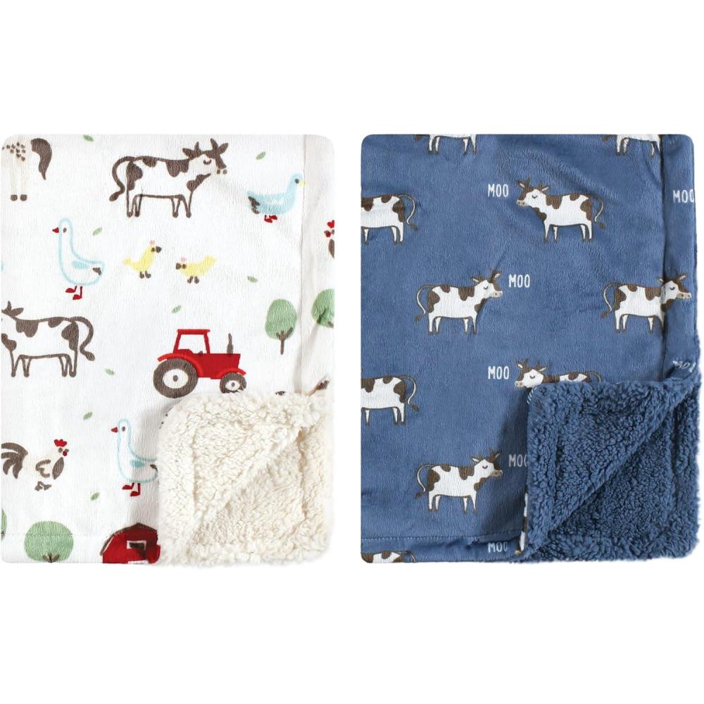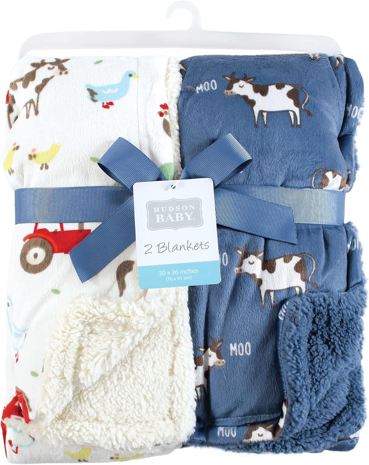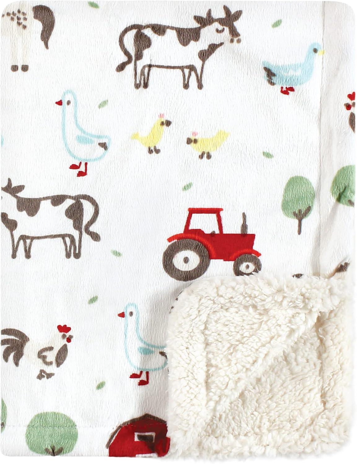 Hudson Baby Unisex Baby Plush Mink and Sherpa Blanket, Floral, One Size(Boy Farm Animals)