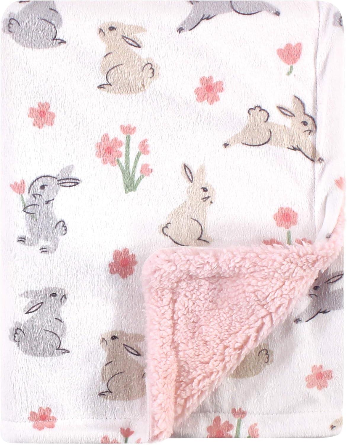 Hudson Baby Unisex Baby Plush Mink and Sherpa Blanket, Floral, One Size(Bunny)