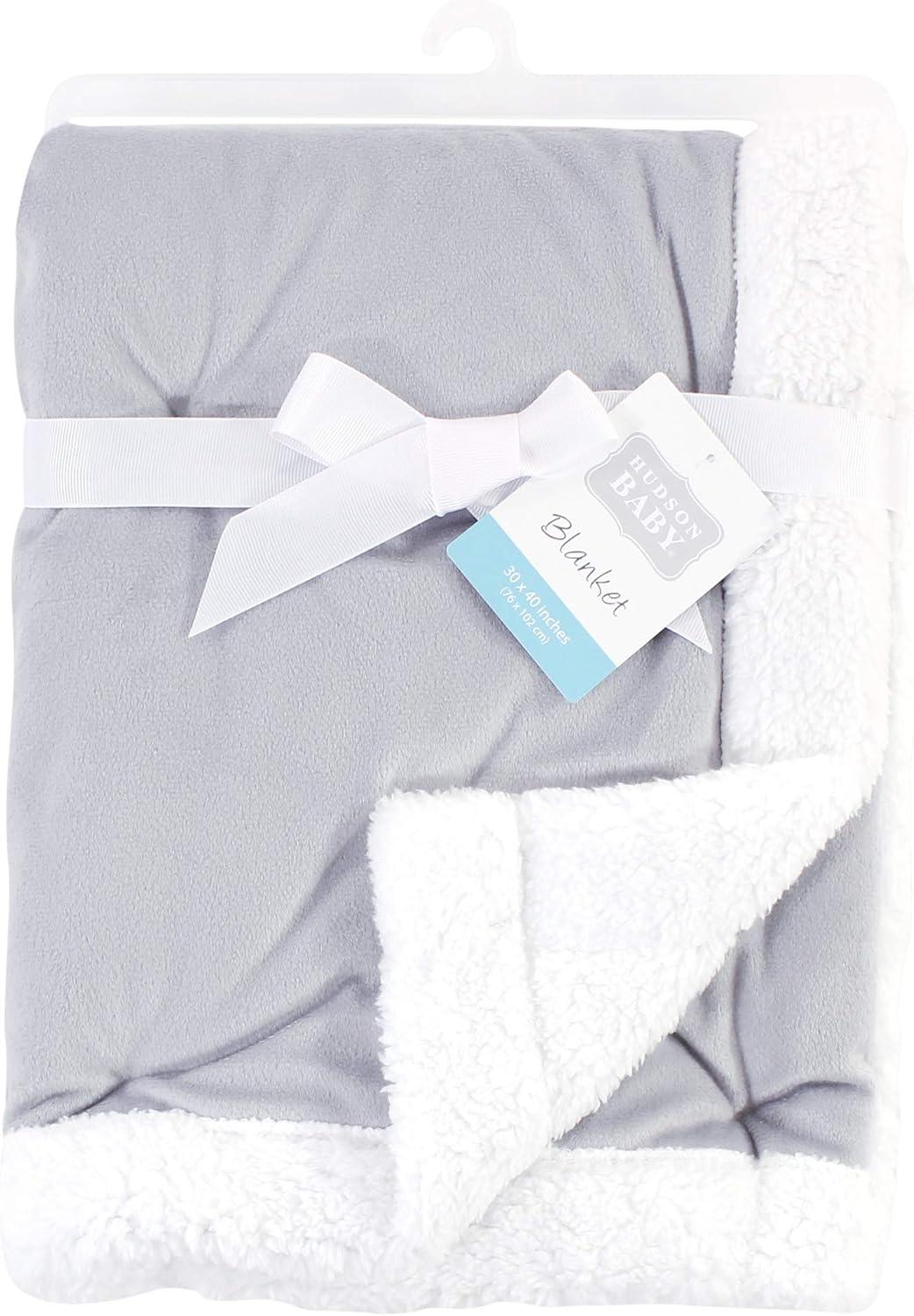 Hudson Baby Unisex Baby Plush Mink and Sherpa Blanket, Floral, One Size(Gray Plaid)
