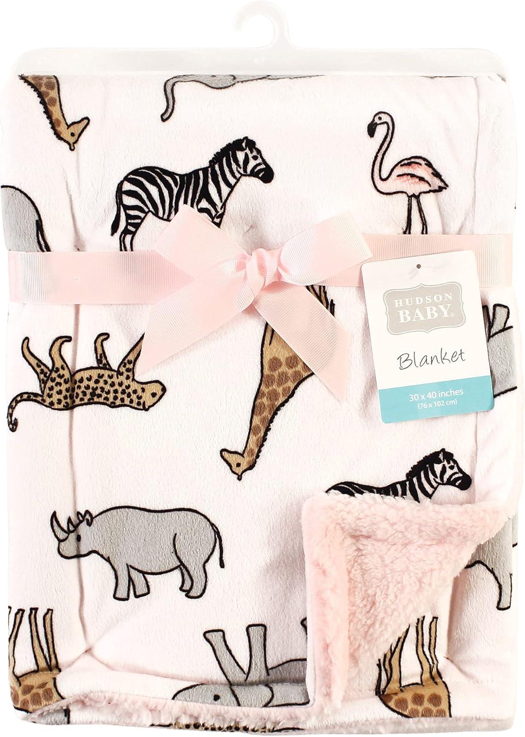 Hudson Baby Unisex Baby Plush Mink and Sherpa Blanket, Floral, One Size(Modern Pink Safari)